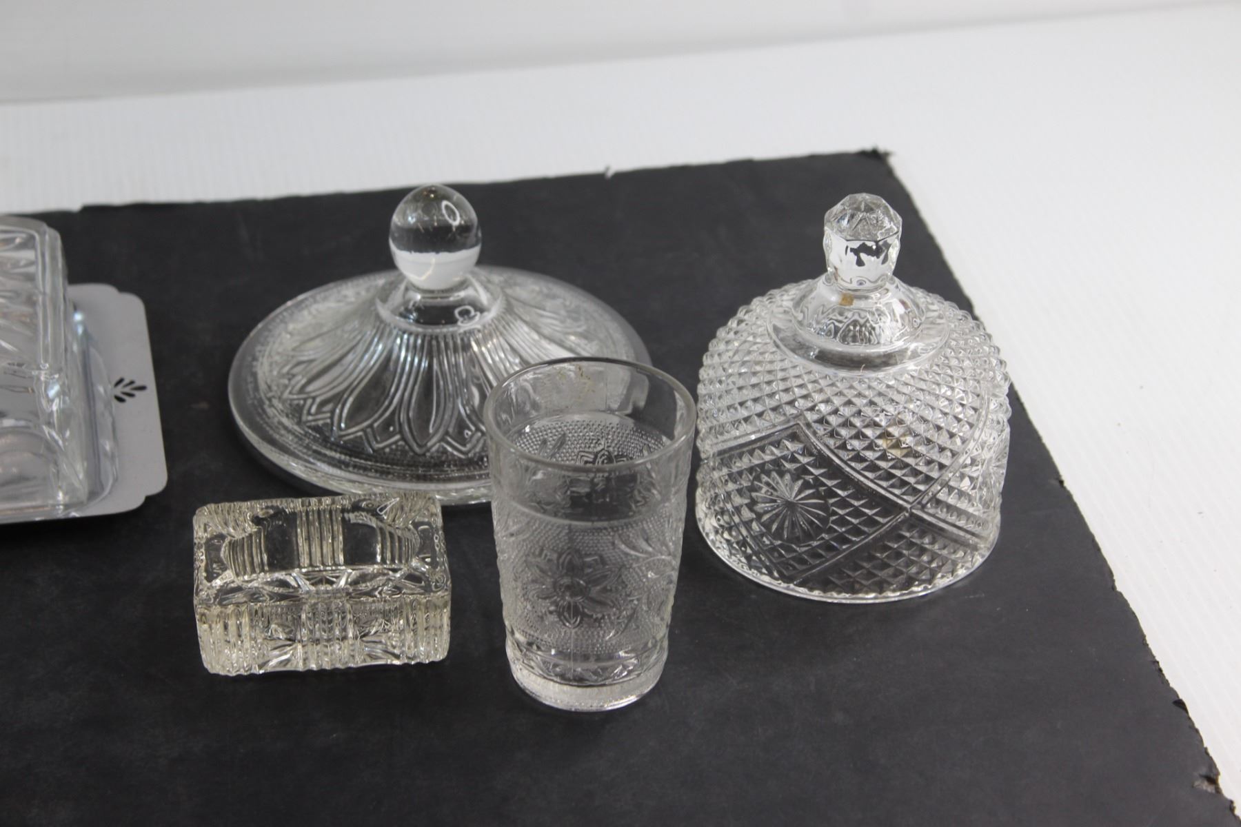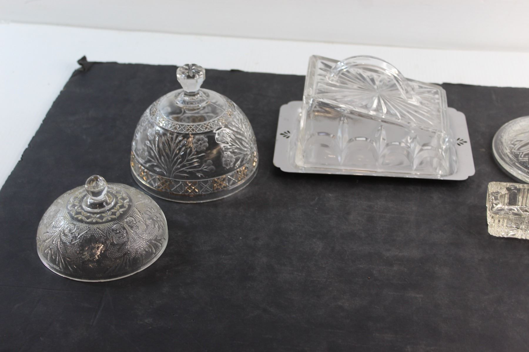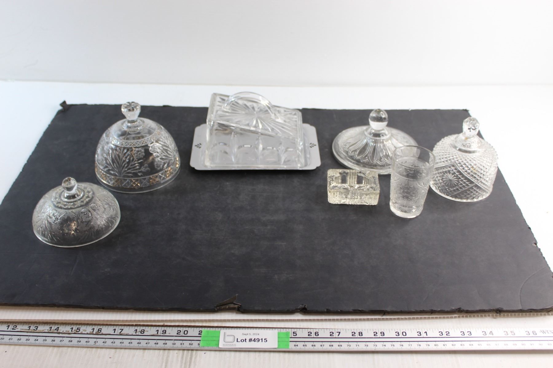 (4) Glass Lids, Cheese Dish, Glass and Ash Tray