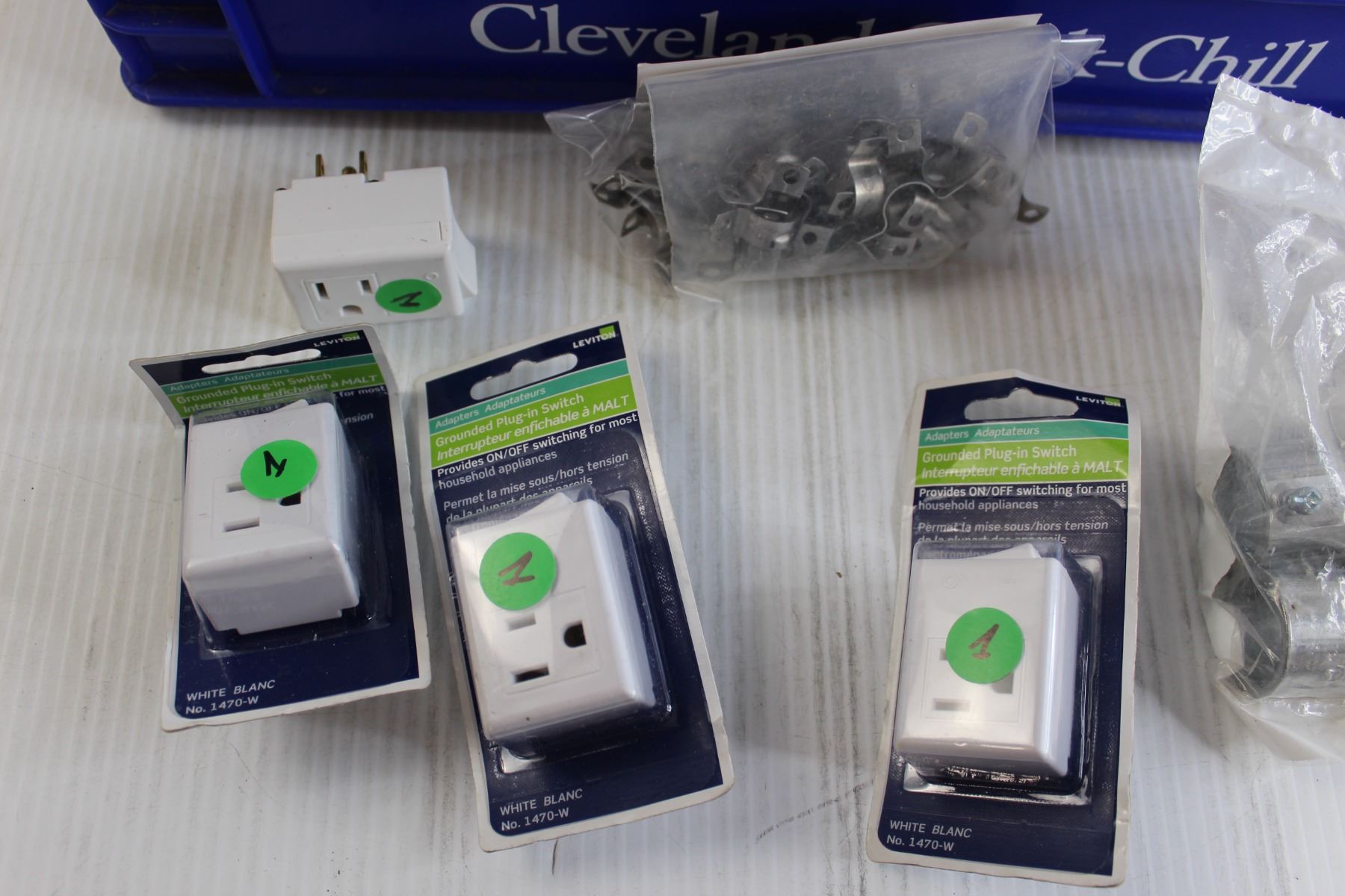 (4) Grounded Plug-In Switches - Sealed, Assorted Hardware, Crate