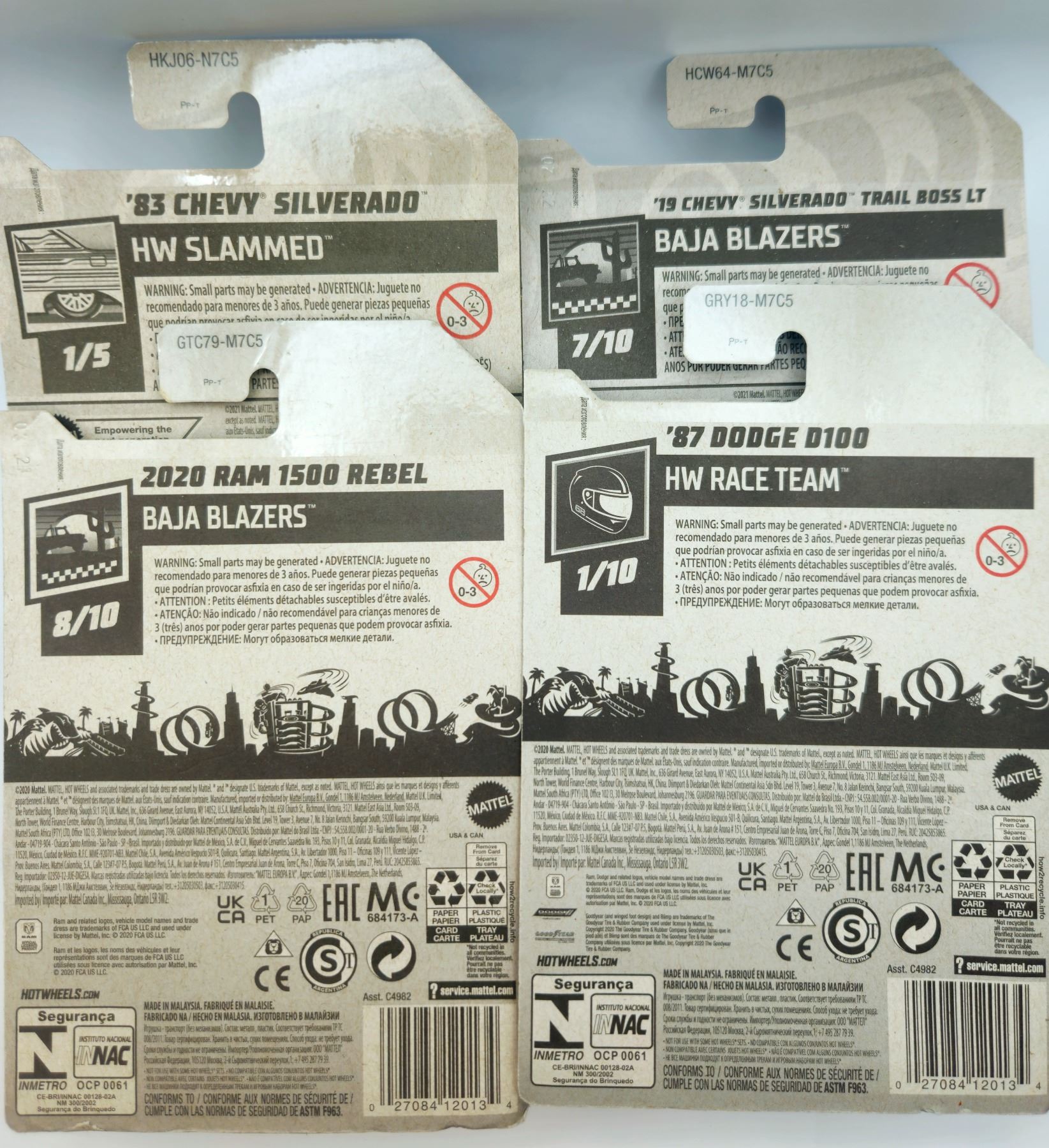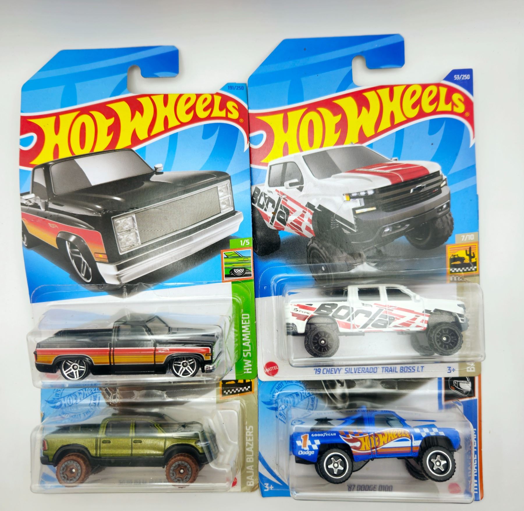 4 HOT WHEELS DODGE & CHEVY TRUCKS