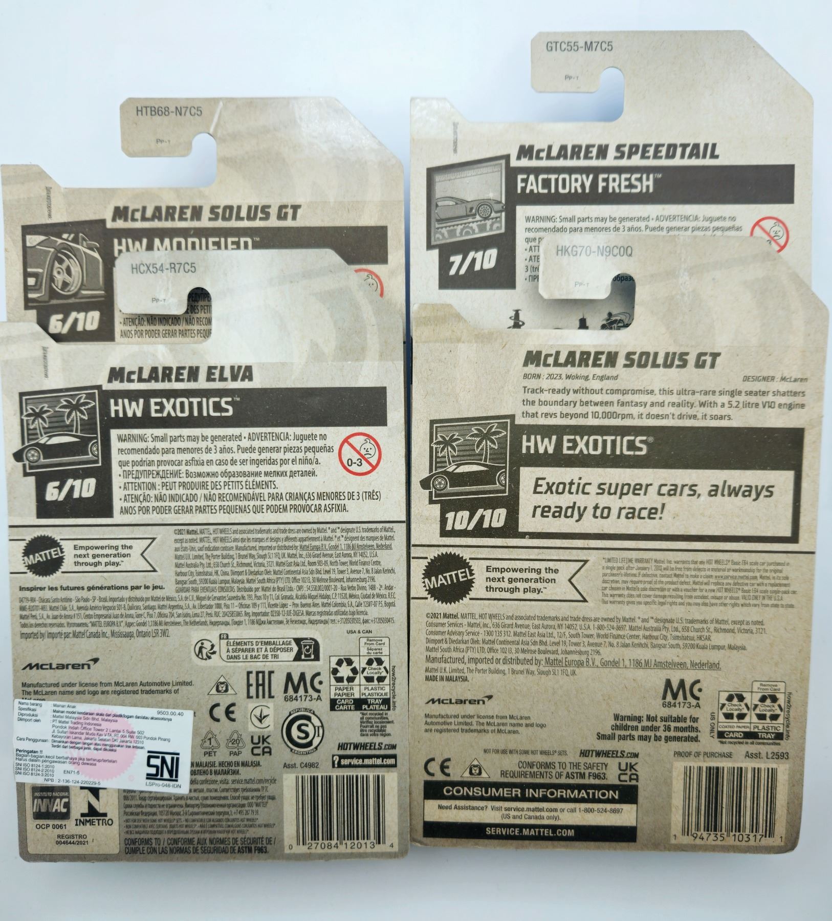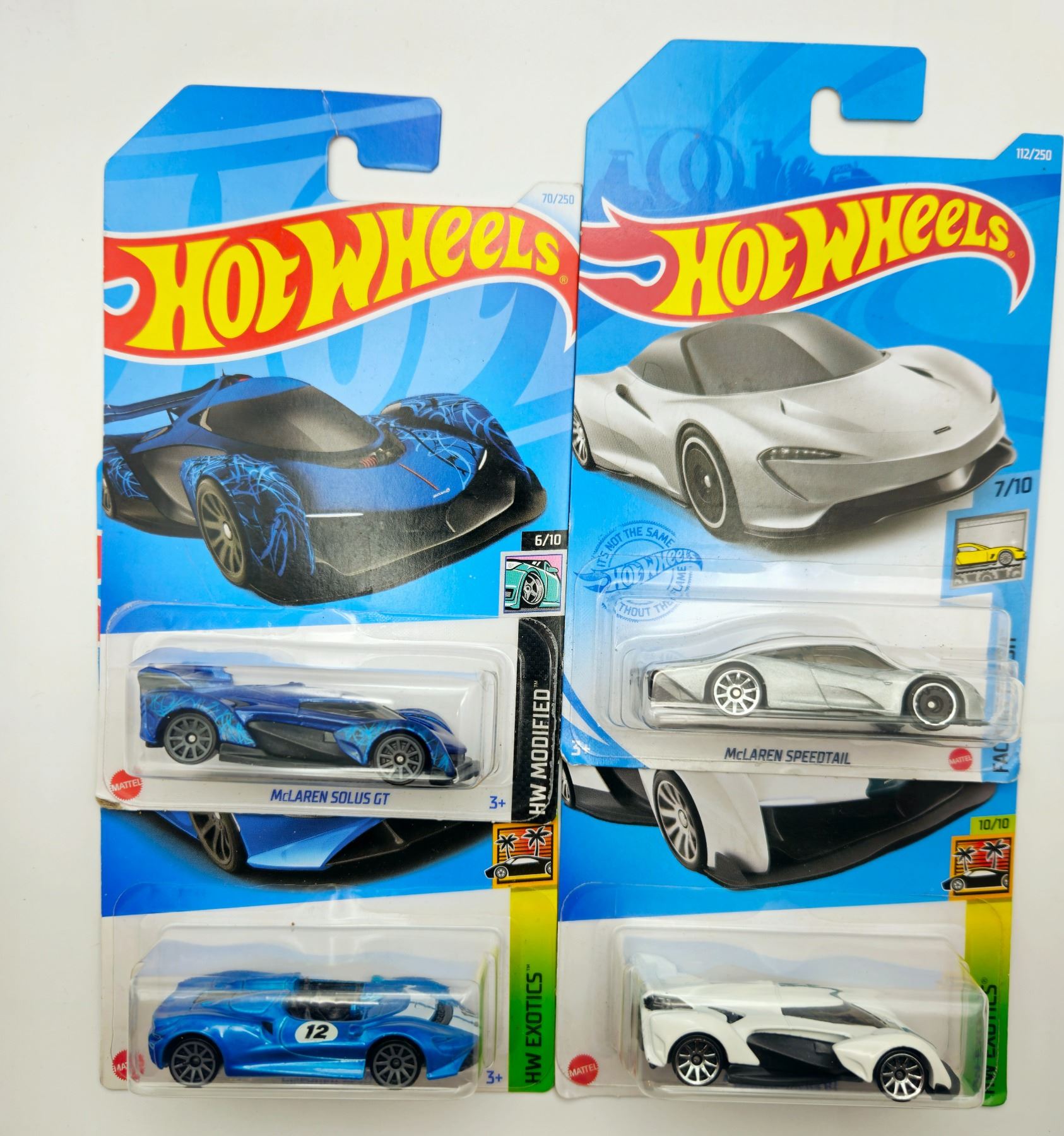 4 HOT WHEELS MCLAREN SOLUS GT & SPEEDTAIL & ELVA