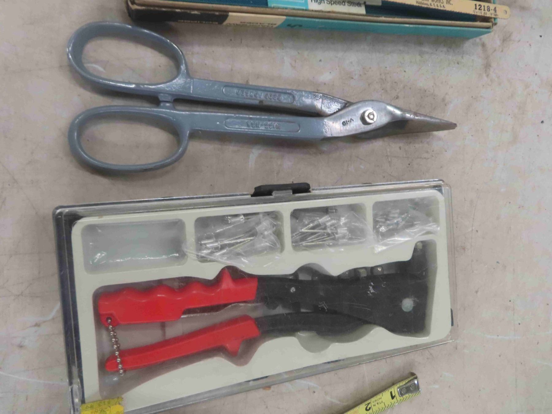 4 Hack Saws, Hack Saw Blades, Riveter, Tin Snips