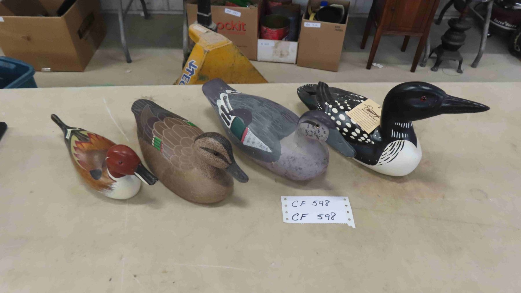 4 Hand Carved Wooden Ducks - Largest 4" x 7" x 13"