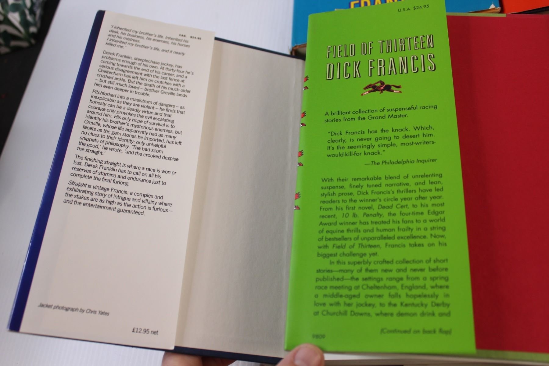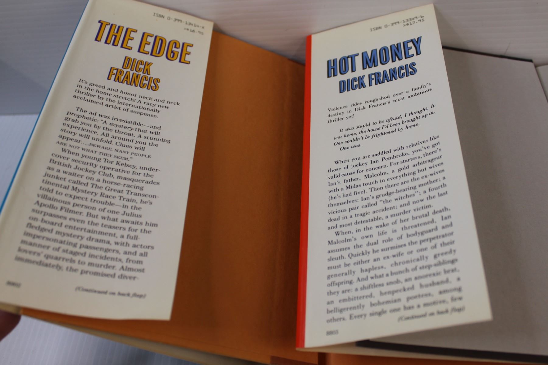 (4) Hard Cover Books: The Edge, Hot Money, Straight, Field of Thirteen