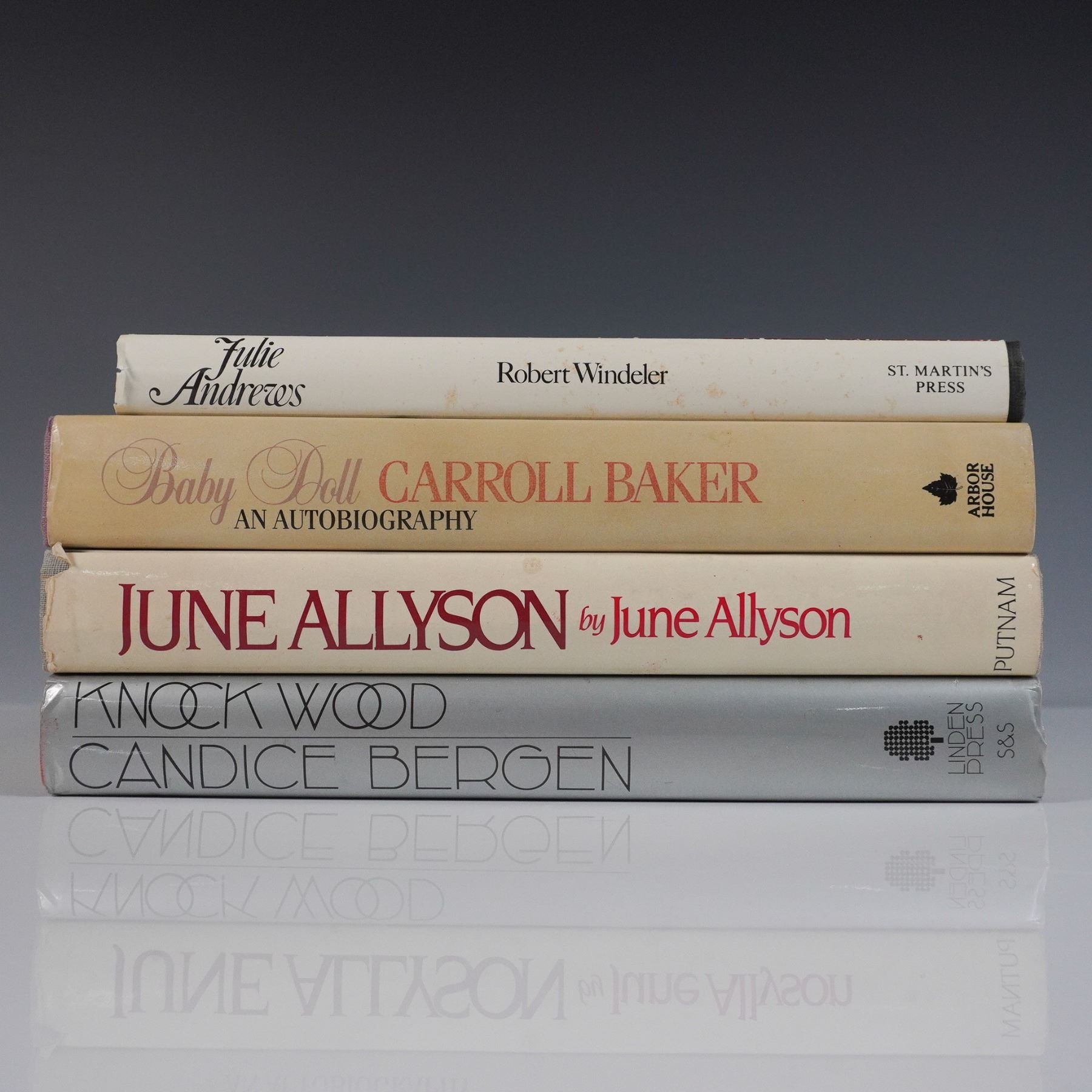 Titles including: June Allyson by June Allyson with Frances Spatz Leighton (1982); Baby Doll: An Autobiography by Carroll Baker (1983); Knock Wood by Candice Bergen (1984); Julie Andrews by Robert Windeler (1983). This collection features biographies and memoirs of iconic Hollywood actresses, offering personal insights into their lives and careers. and many more. The dimensions of the collection measure: 9.25"H x 4.5"W.