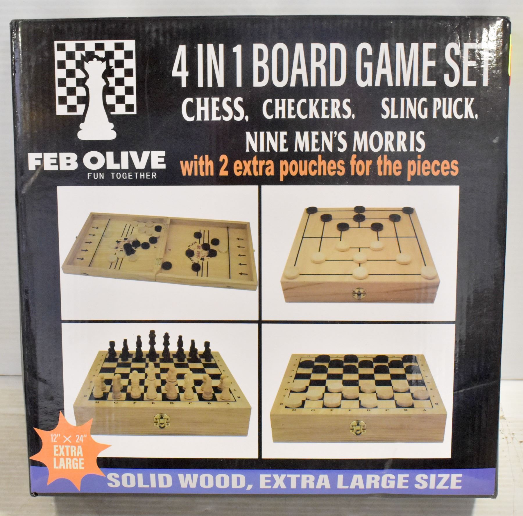 4 IN 1 BOARD GAME SET, CHESS, CHECKERS, SLING PUCK