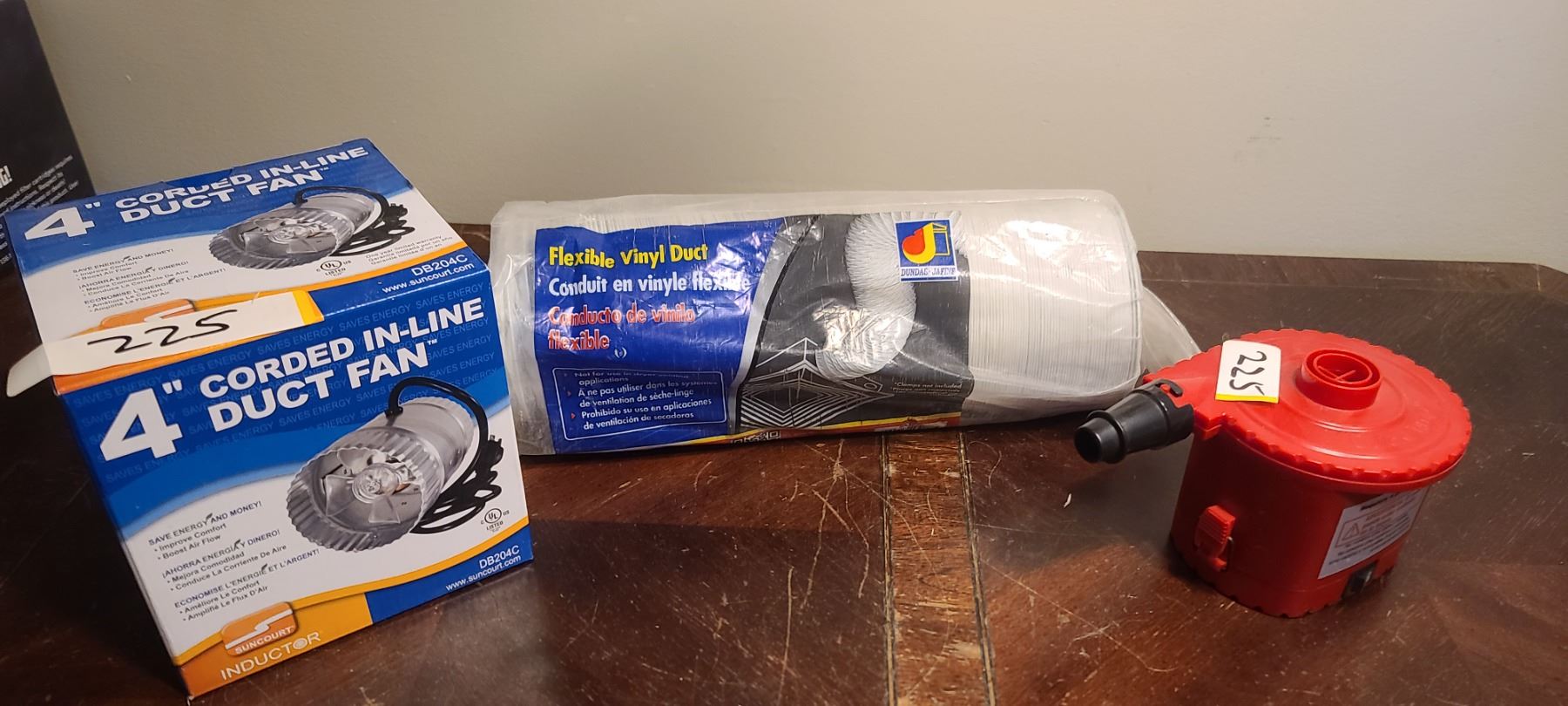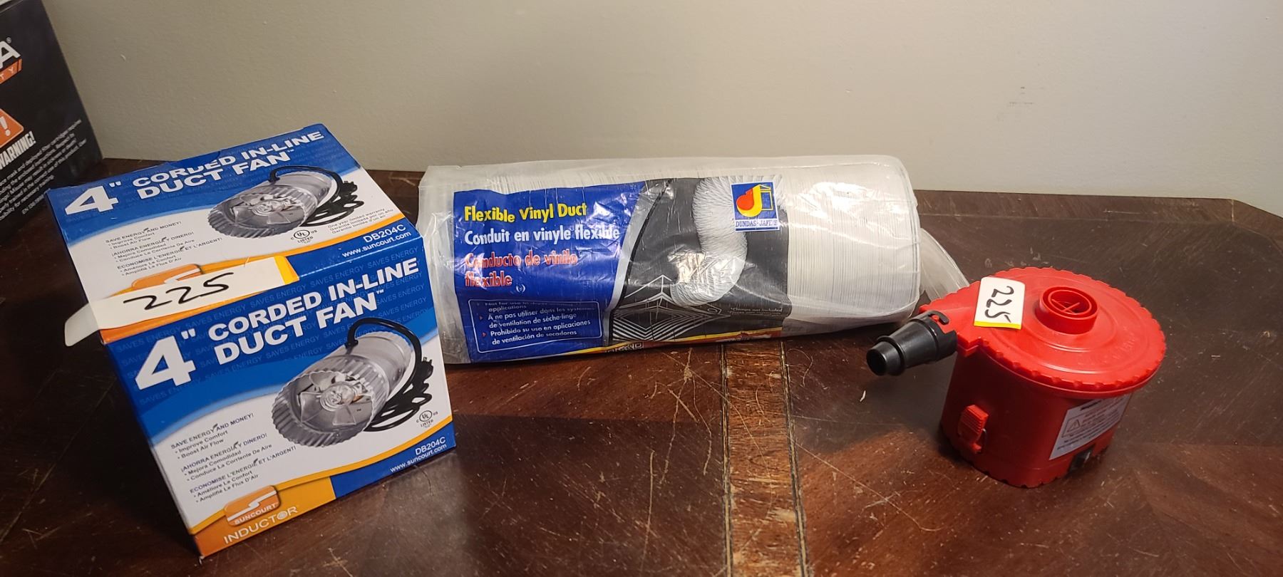 4" IN LINE DUCT FAN AND BATTERY POWERED AIR PUMP