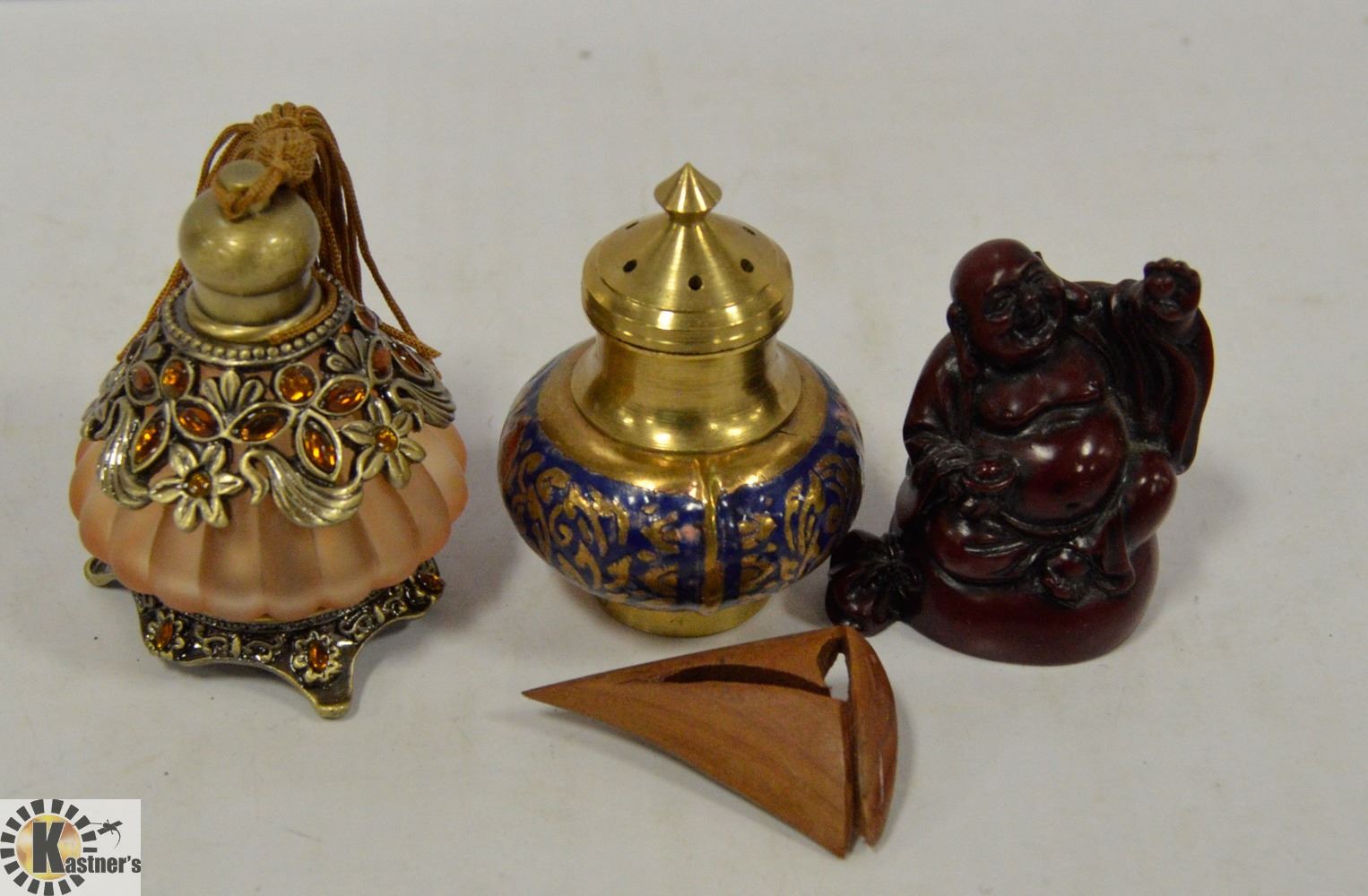 4 ITEM LOT PERFUME ENAMEL WOOD SAIL BRASS