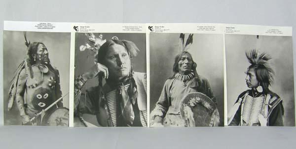 4 Indian Photographic Prints. 1. Last Horse-Sioux. 2. A Klickitat Brave. 3. Foolbull-Sioux Medicine Man. 4. Samual American Hose-Sioux. Measure approx. 8'' x 10''. SHI $20.