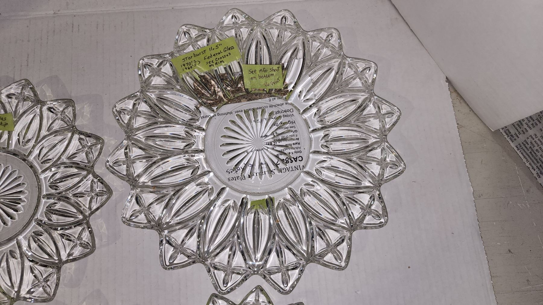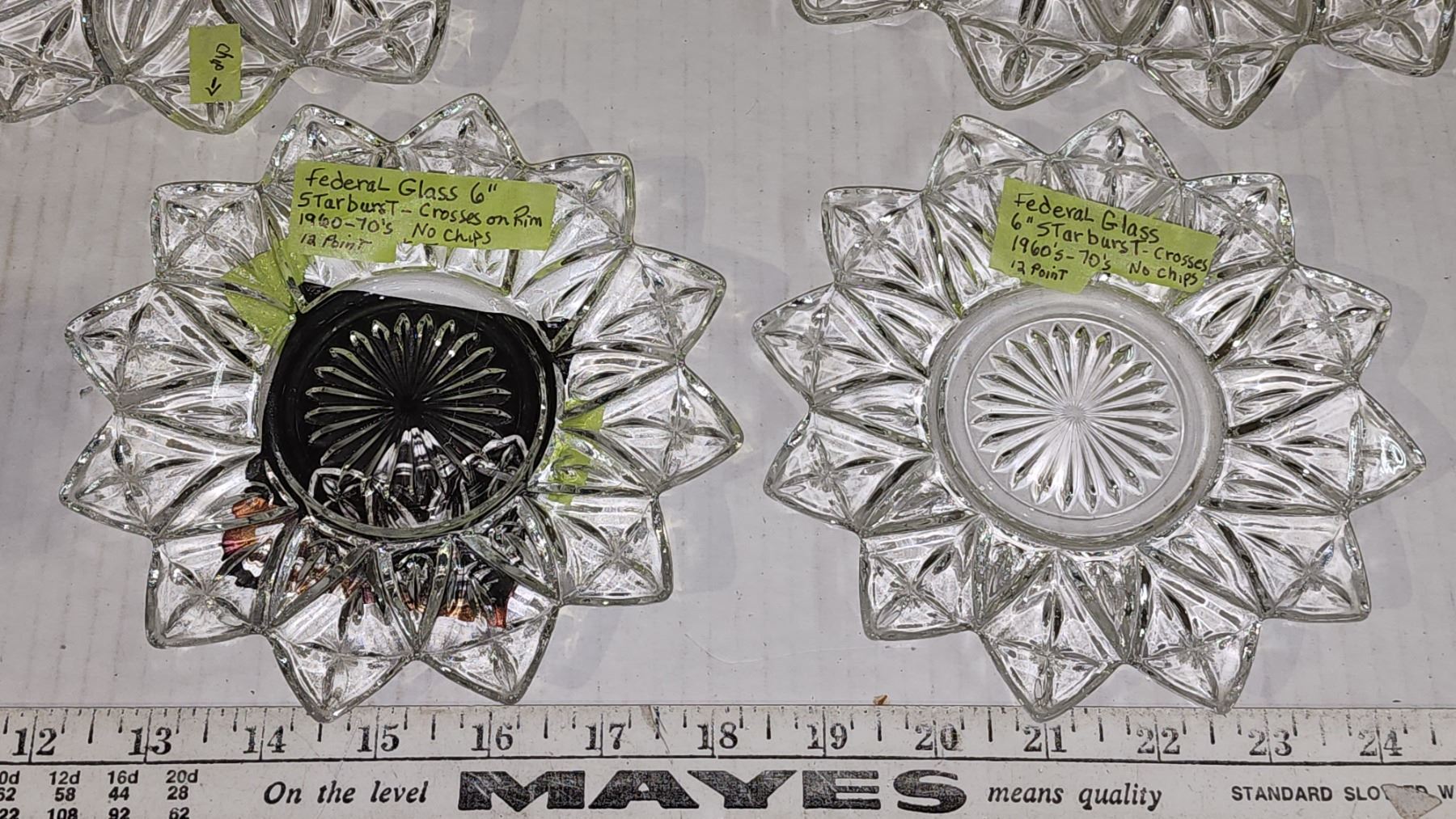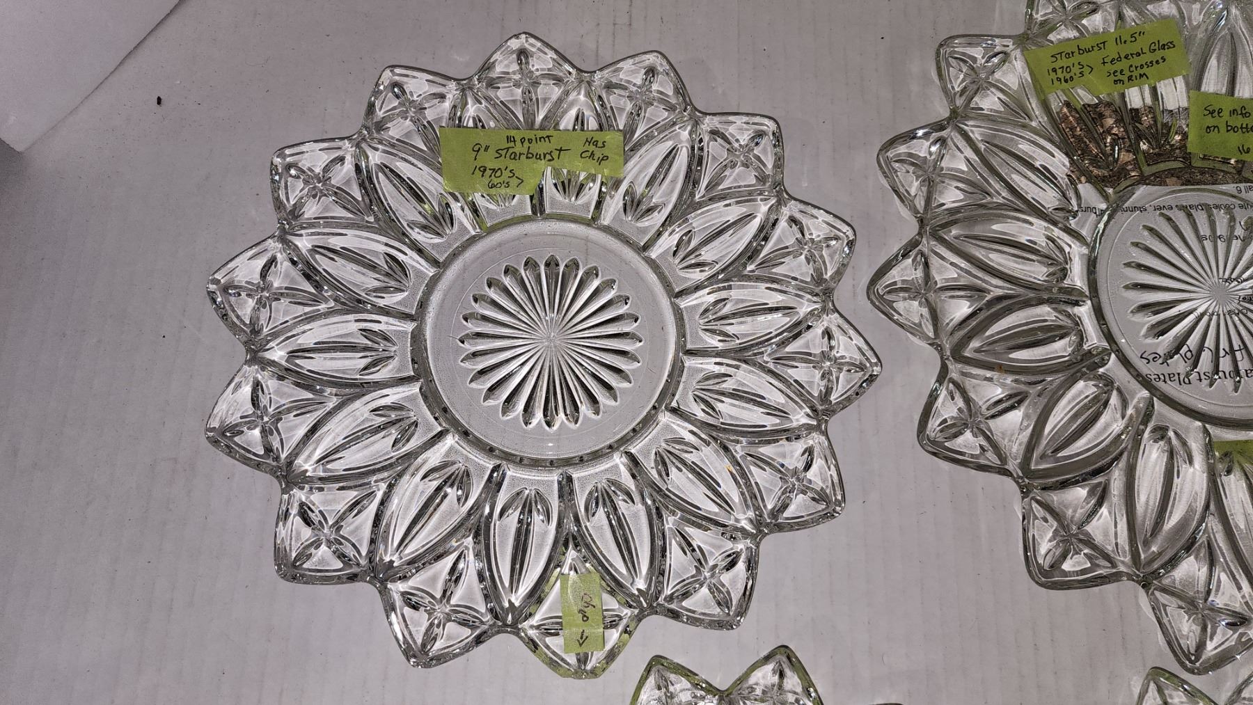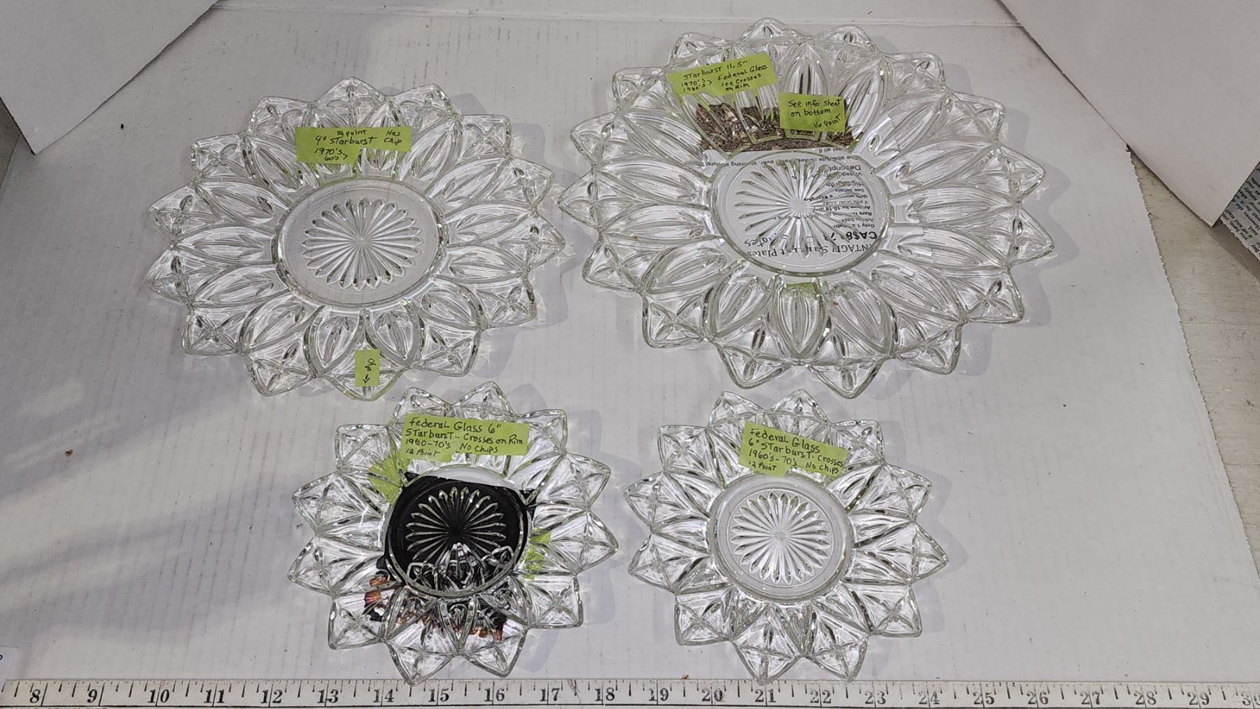 4 Iridescent Federal Glass Starburst Plates 1970's 2x6"; 9"; 11.5"