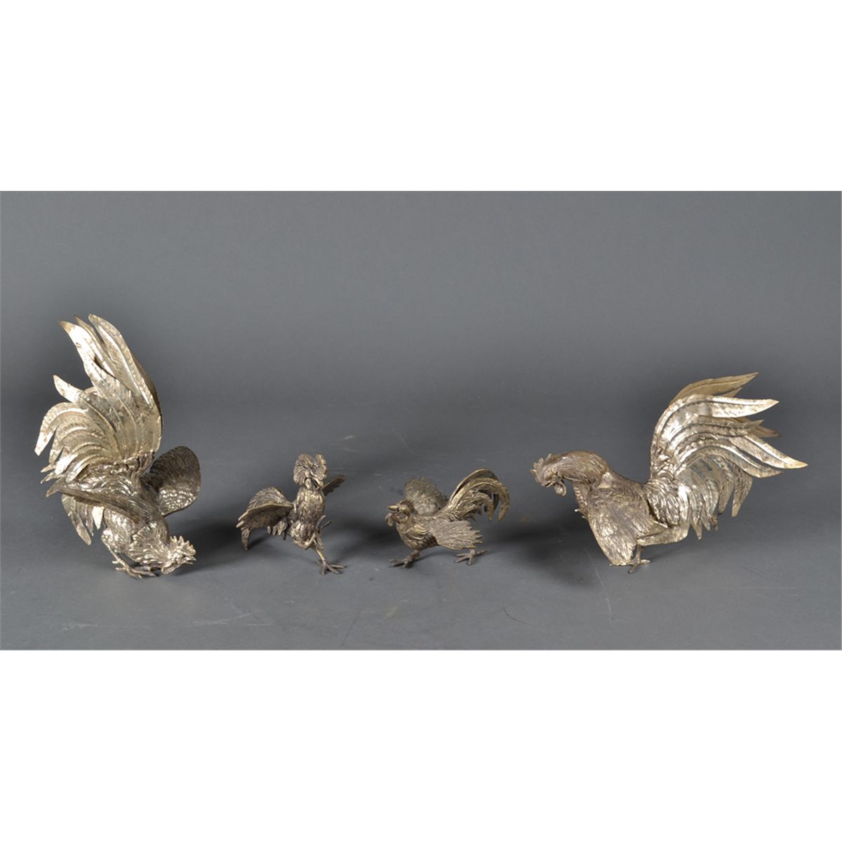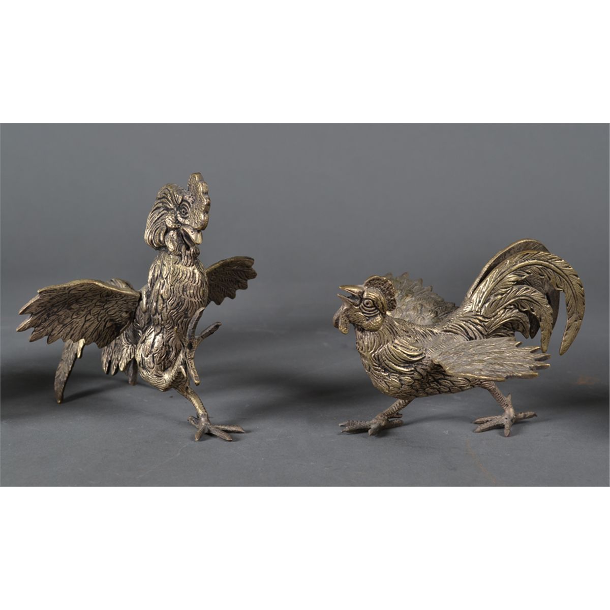 All finely molded to depict fighting cocks in various stances. Tallest 10.5" H. Circa early 20th century. All marked for Italy. Private collection Ada, MI.