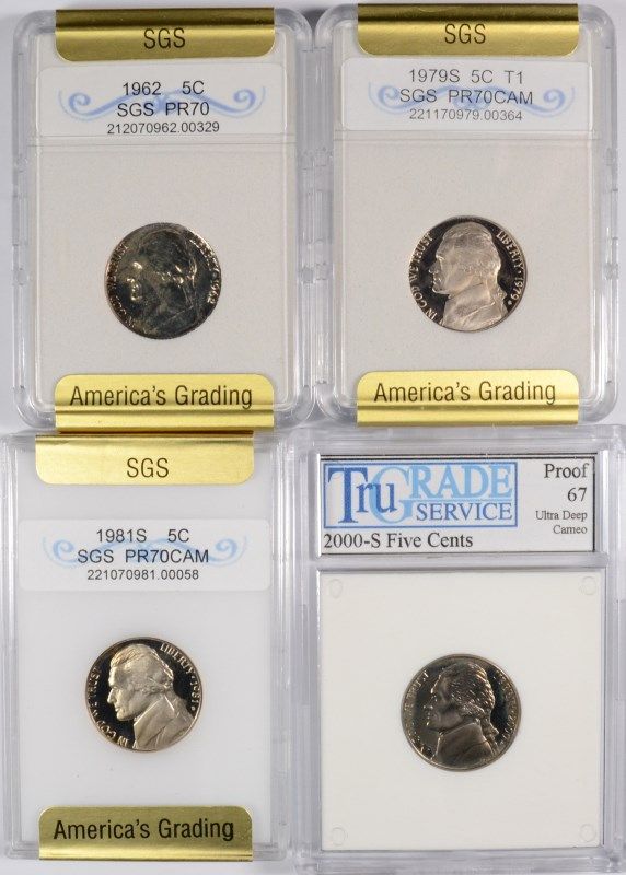 (4) JEFFERSON NICKELS SLABBED PROOFS (62, 79-S I, 81-S, 00-S)