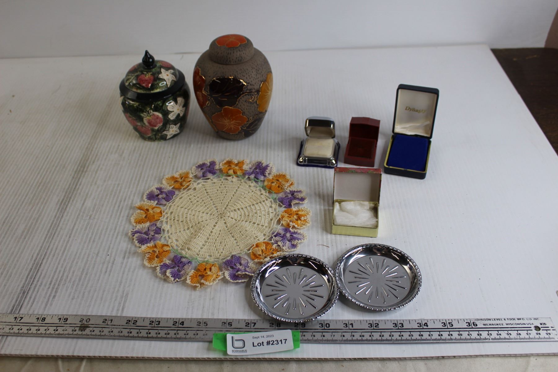 (4) Jewelry Box Holders, (2) Vases with Lids, Misc.