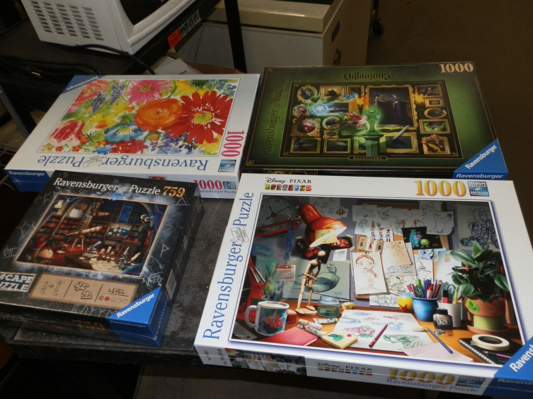 you get 4 Jigsaw Puzzles for one money, 3 of the puzzles have 1000pc, and 1 has 759pc, approx Retail of $100.00...Ravensburger- made in Germany...New