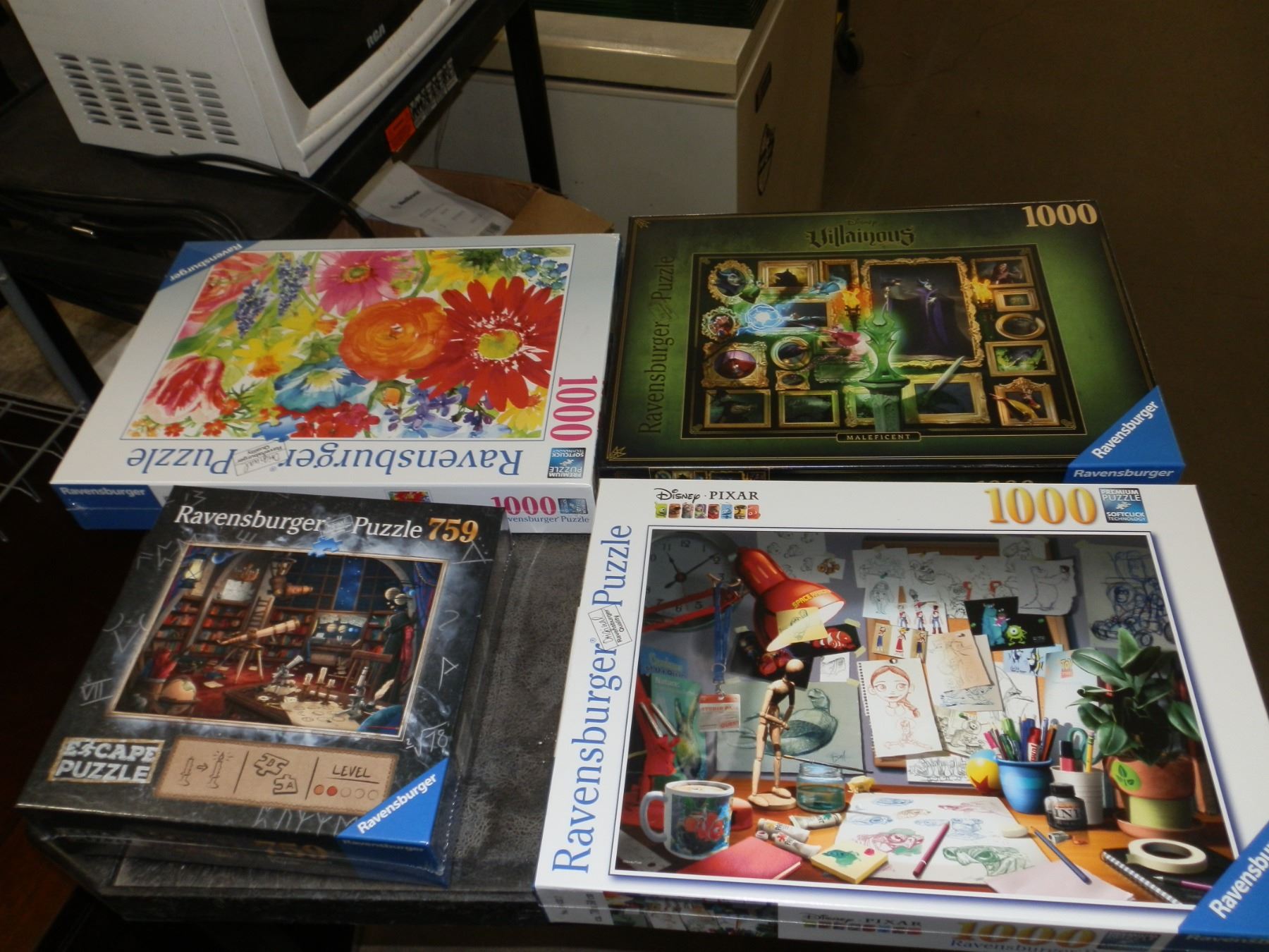 you get 4 Jigsaw Puzzles for one money, 3 of the puzzles have 1000pc, and 1 has 759pc, approx Retail of $100.00...Ravensburger- made in Germany...New
