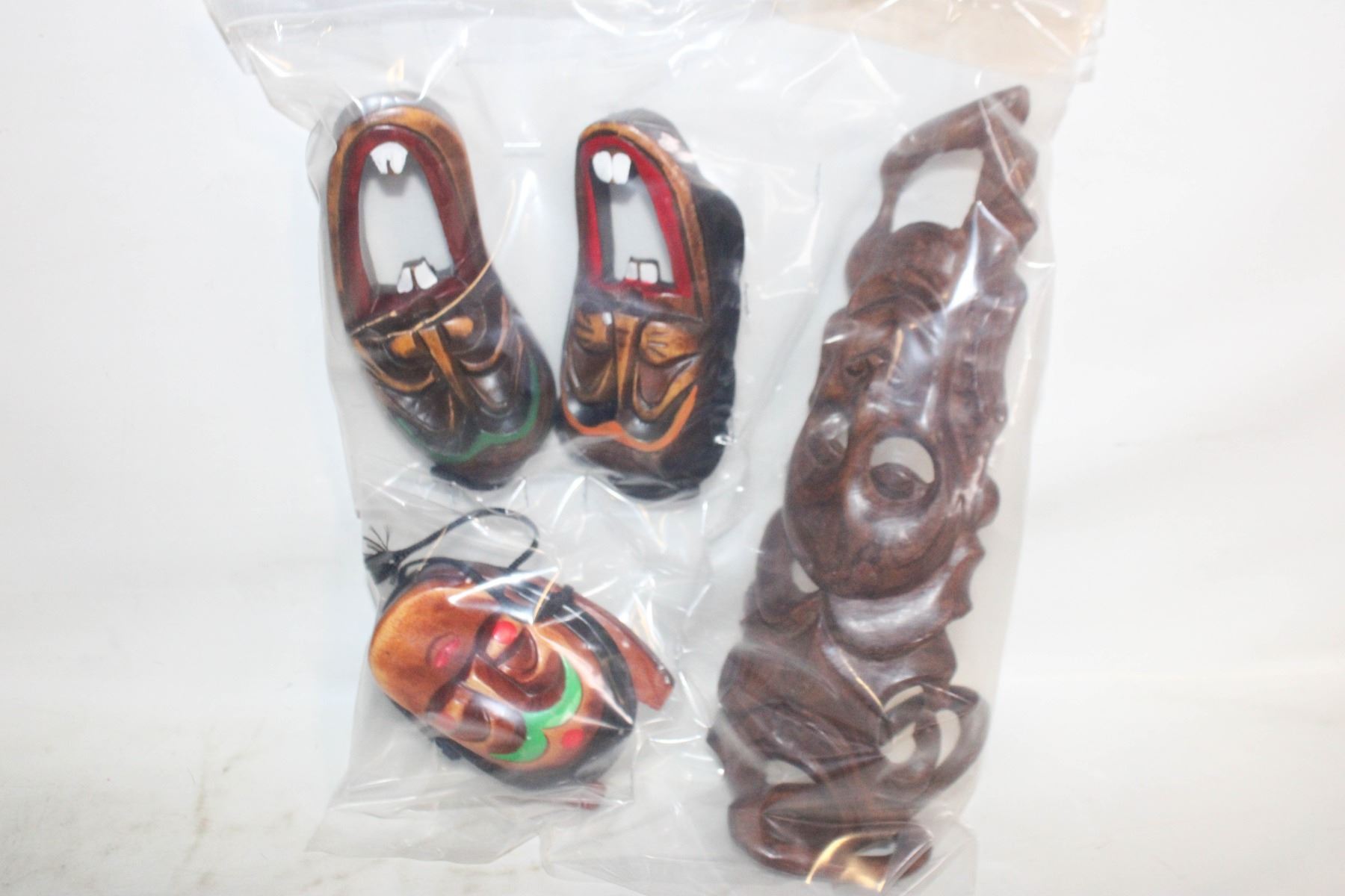 4 KOREAN WOODEN MASKS WALL DECOR