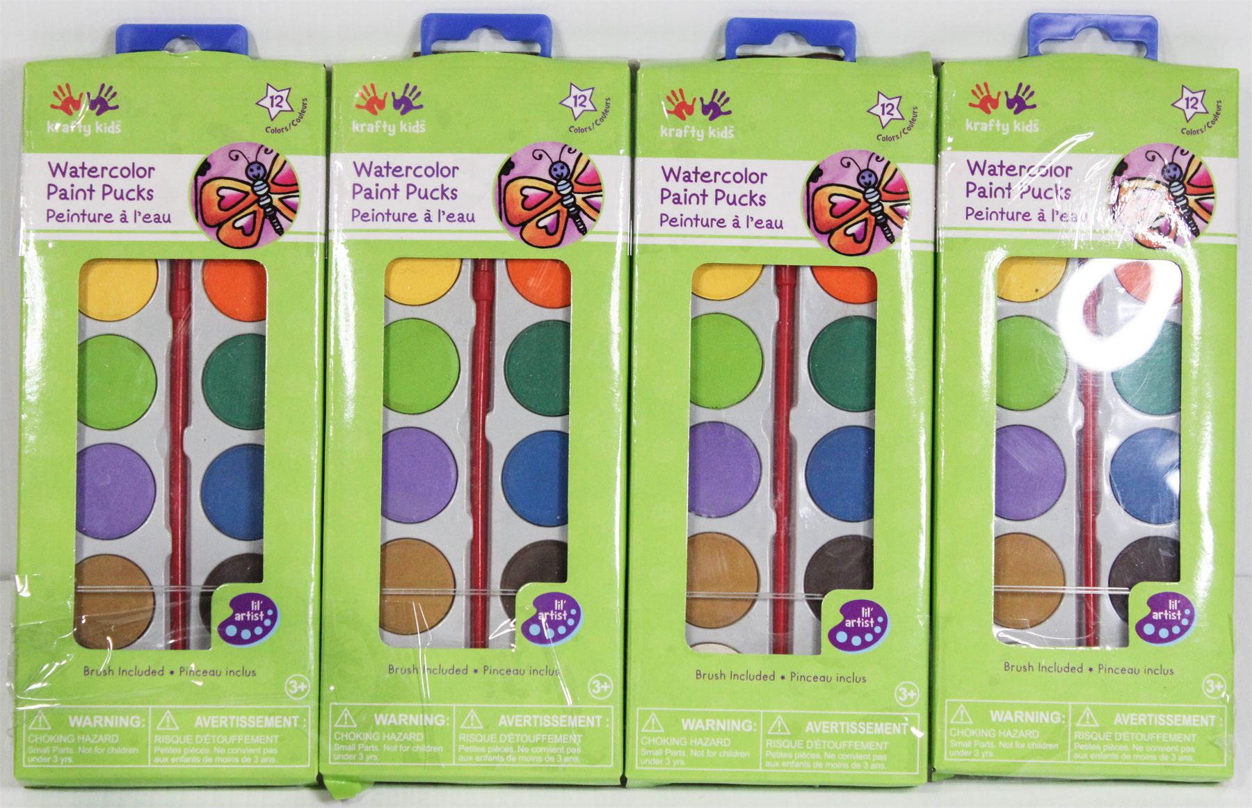 4 KRAFTY KIDS WATERCOLOR PAINT PUCKS - 12 COLORS EA