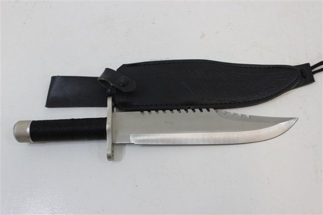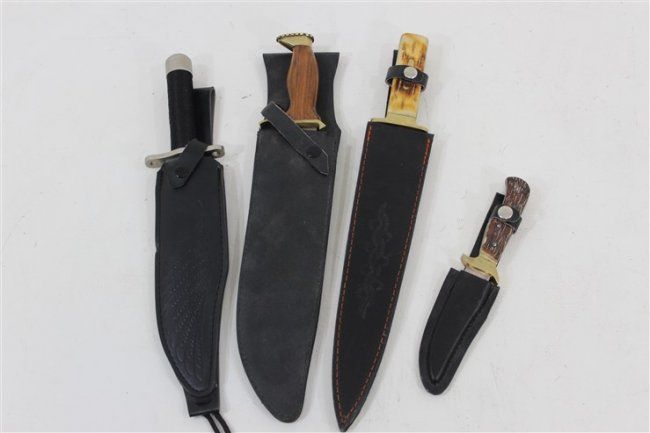 largest approx 17 1/2" dagger, shortest approx 9", 2 knives with saw blades on the back, approx 17" saw blade back, approx 15" saw blade back