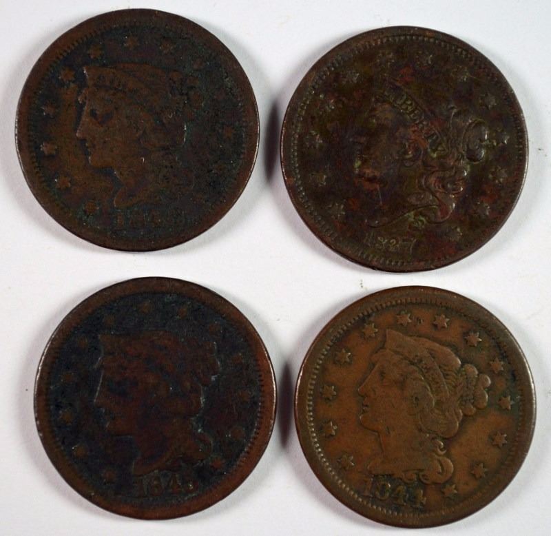 (4) LARGE CENTS (1837, 1844, 1845, 1846)