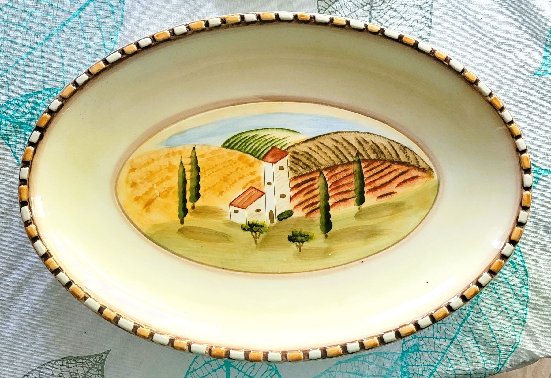 4) LARGE OVAL, HAND PAINTED SERVING PLATTER,