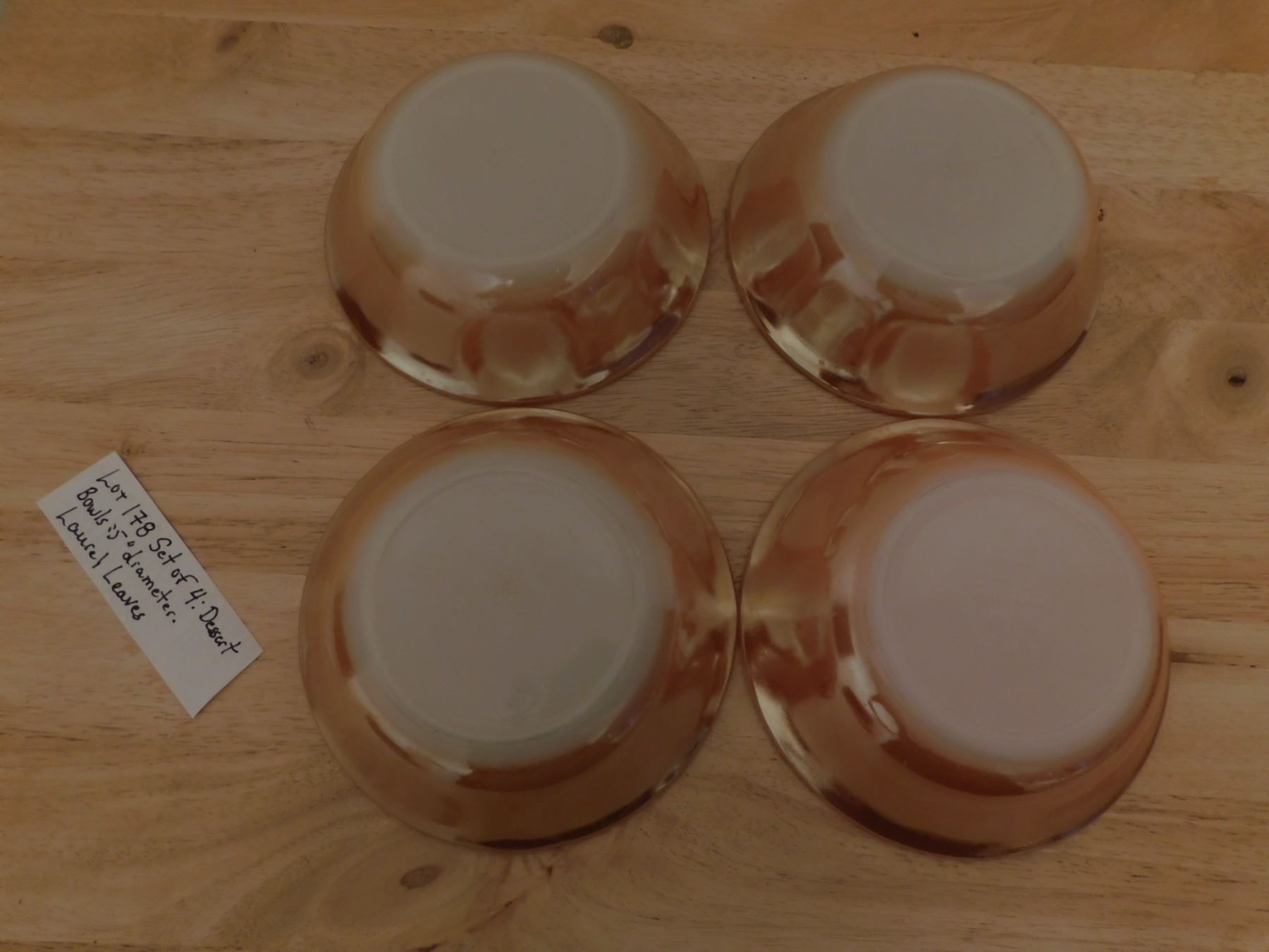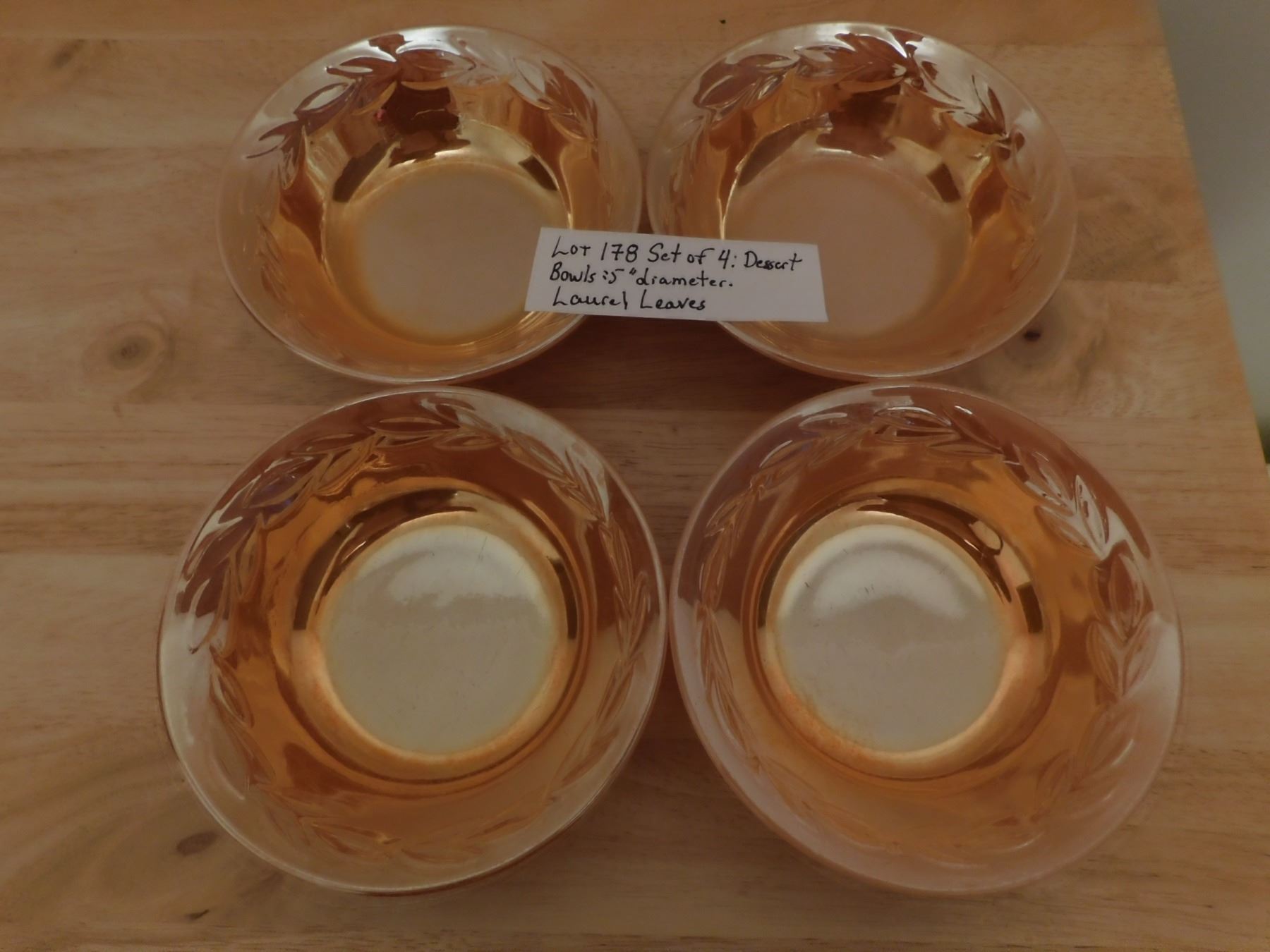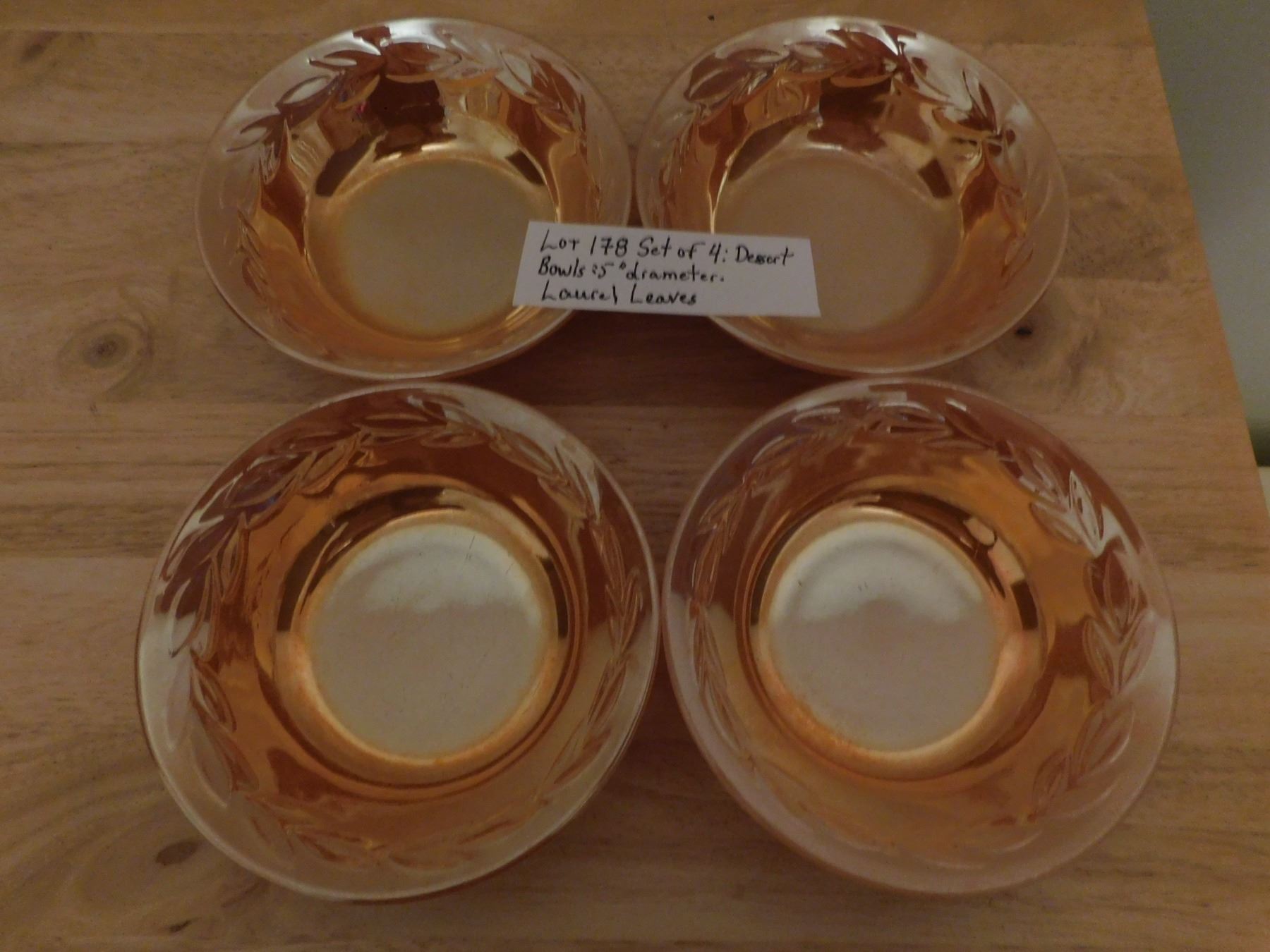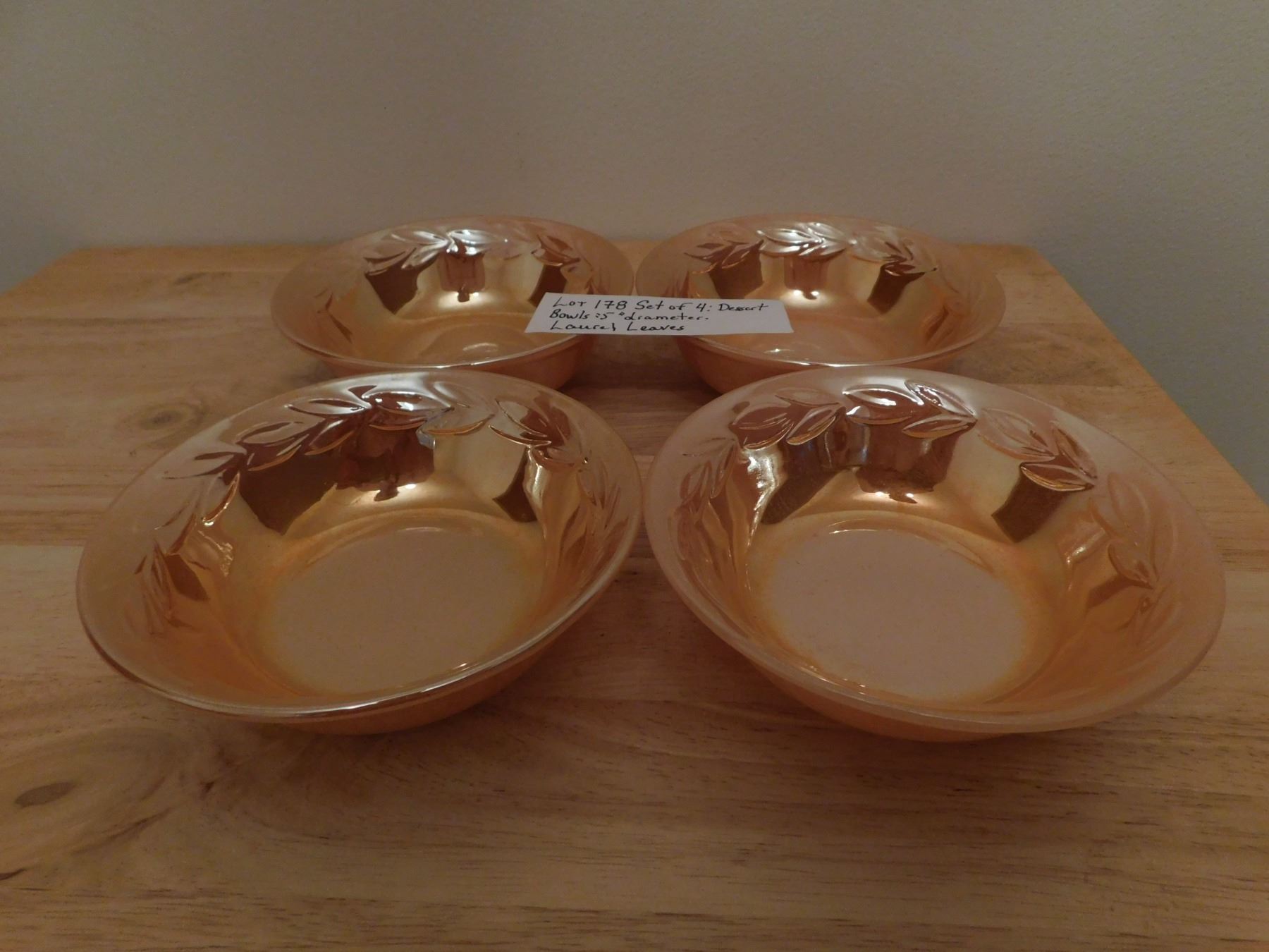 4 LAUREL LEAVES PATTERN PEACH LUSTER BOWLS 5”