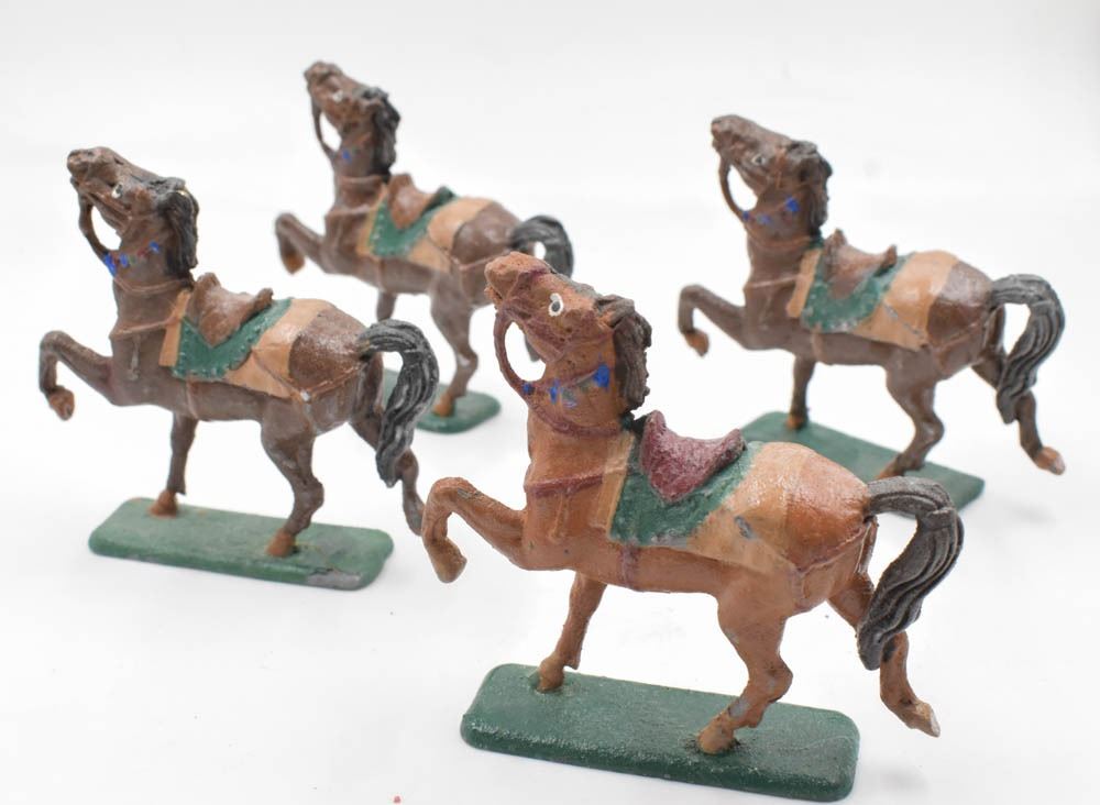 4 LEAD PAINTED PRANCING HORSES