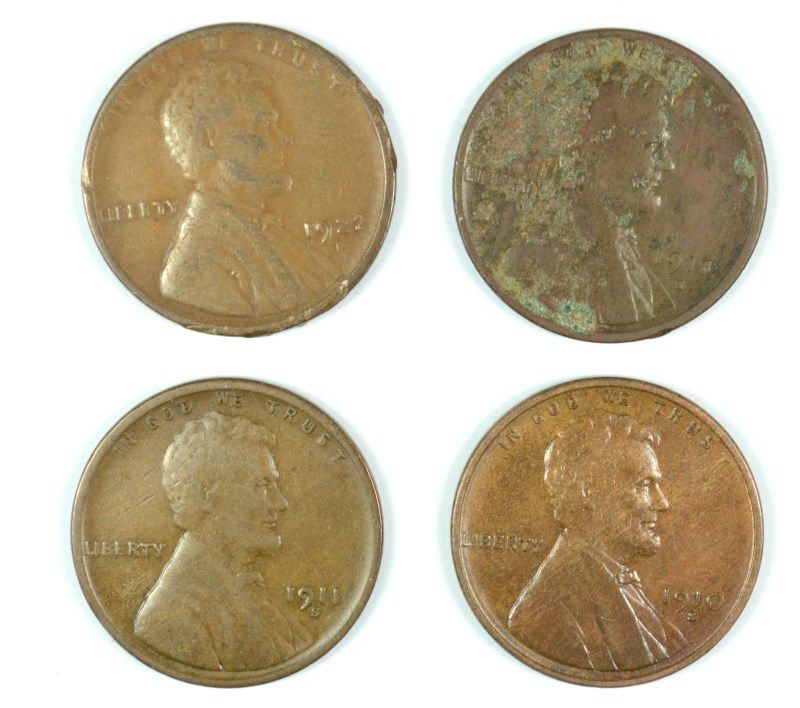 4 LINCOLN CENTS: 1910-S XF, 1911-S VG, 1915-S CORRODED, 1922-D VG