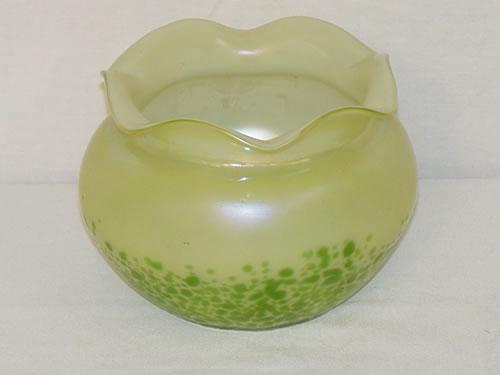 4" LOETZ TYPE ART GLASS BULBOUS VASE W/ RUFFLED EDGE & ALLIGATOR FINISH - POLISHED BOTTOM, UNSIGNED