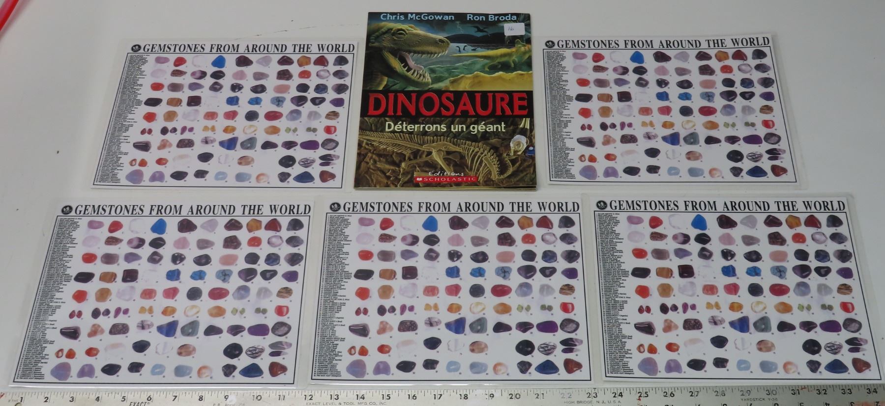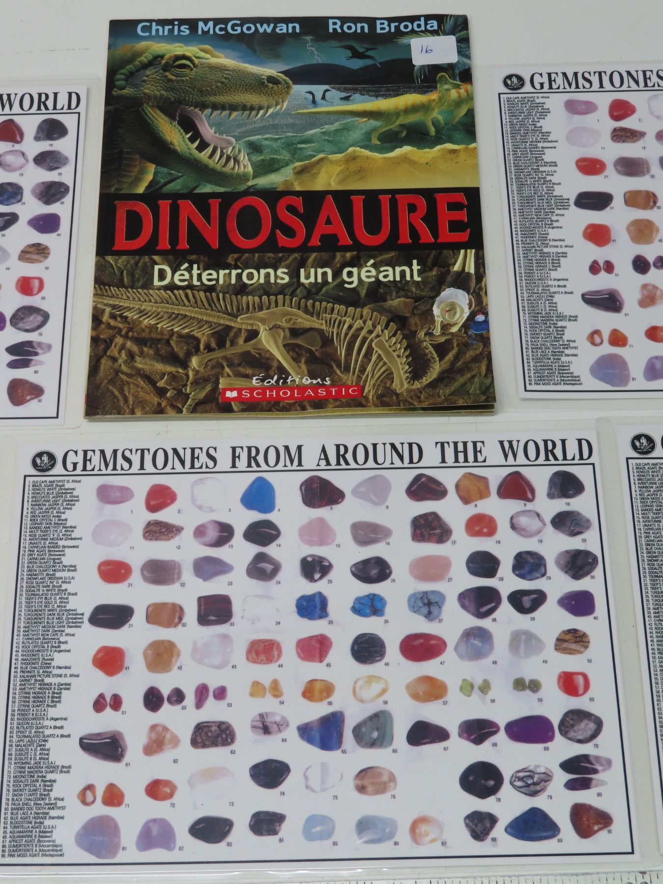 4 Laminated 8x10 Rock Charts + French Dinosaur Book