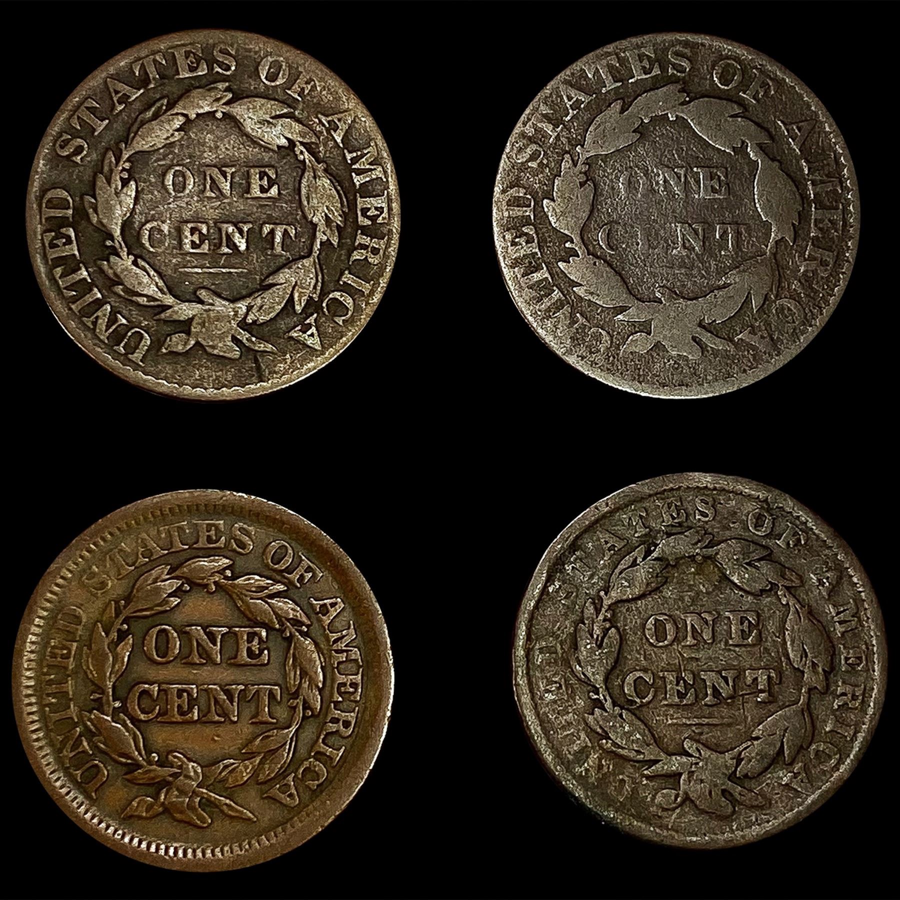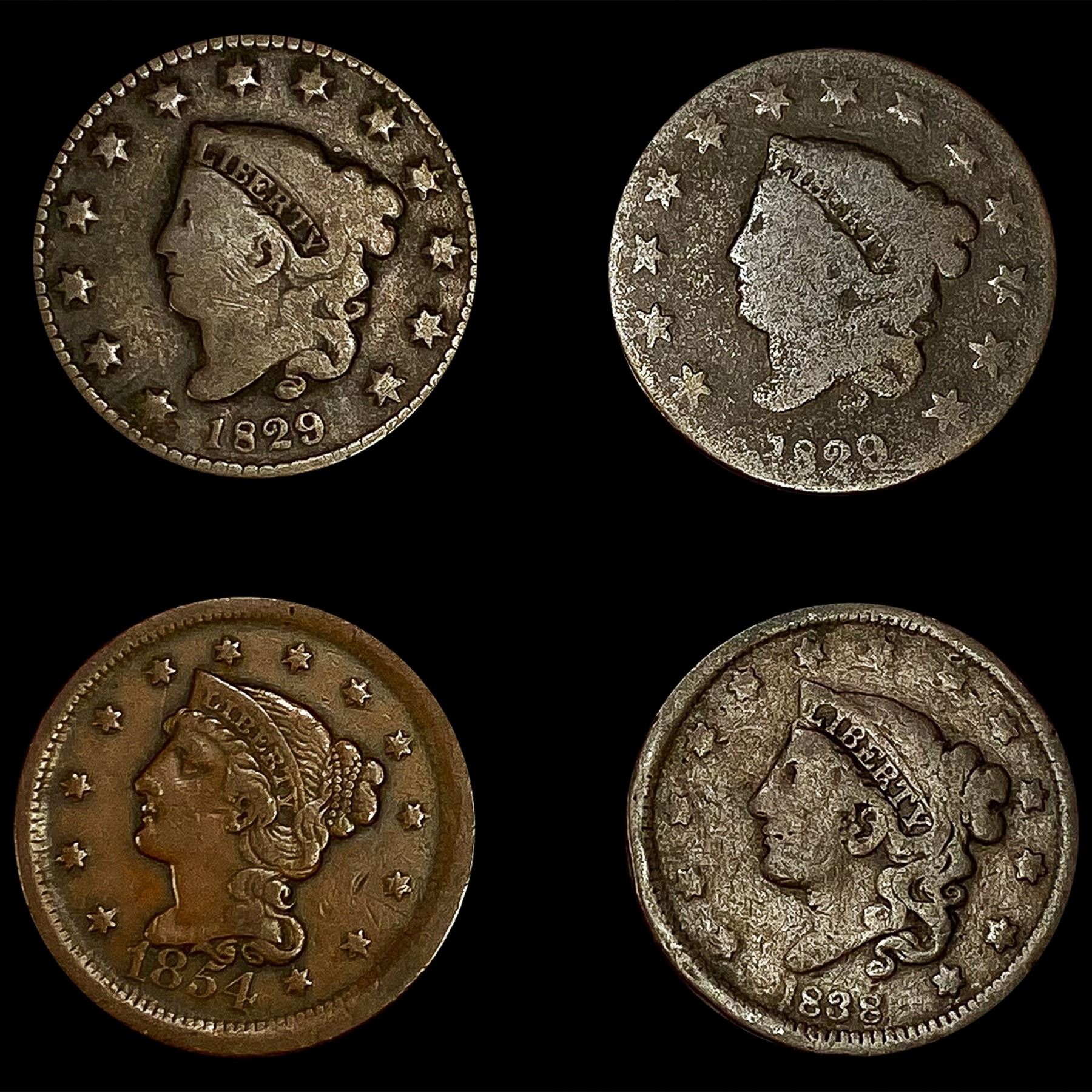 (4) Large Cents (2) 1829, 1838, 1854) NICELY CIRC