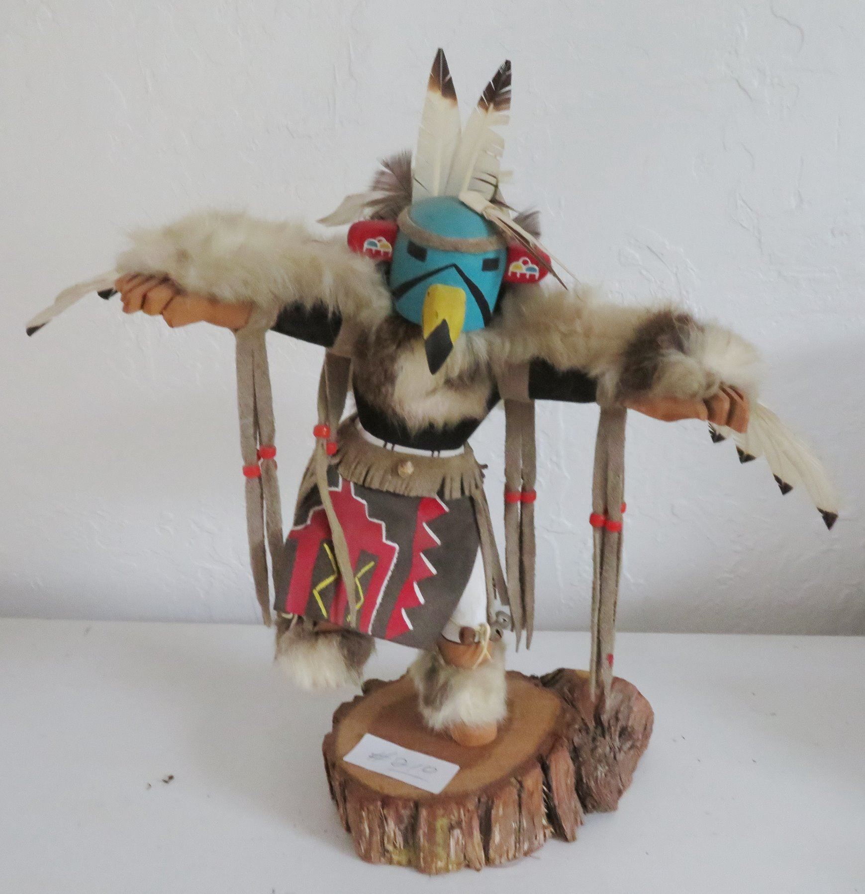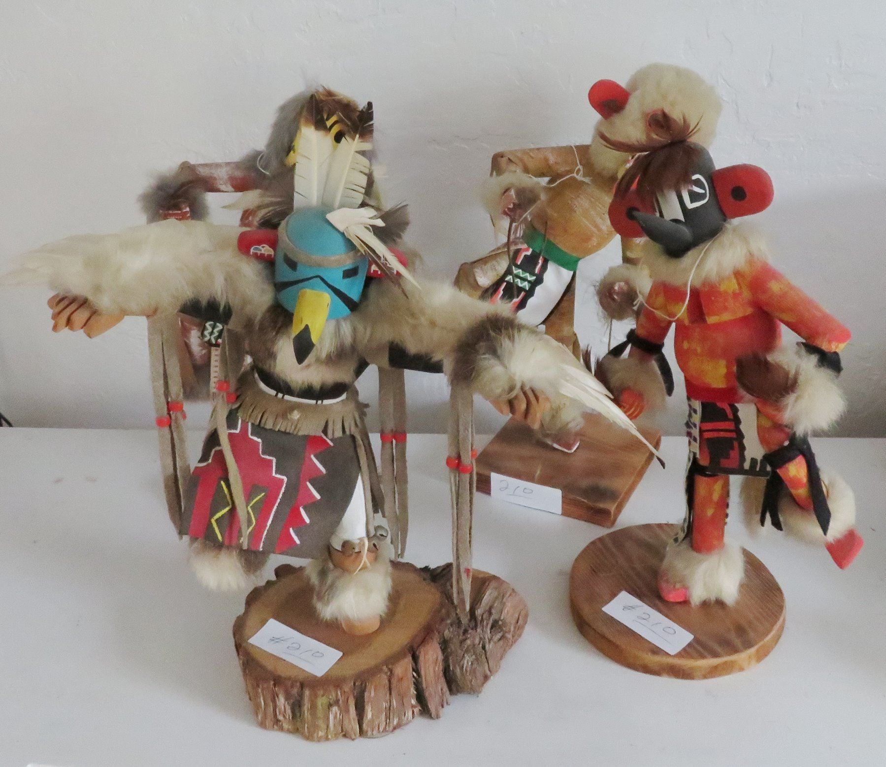 4 Large Hopi Kachinas, c. 1950s. Made of cottonwood, paint and feathers, the largest is 14" tall. Hopi, Arizona. Condition: Good, see images. Shipping: $65.00 USA estimate only, due to size, double-boxed.