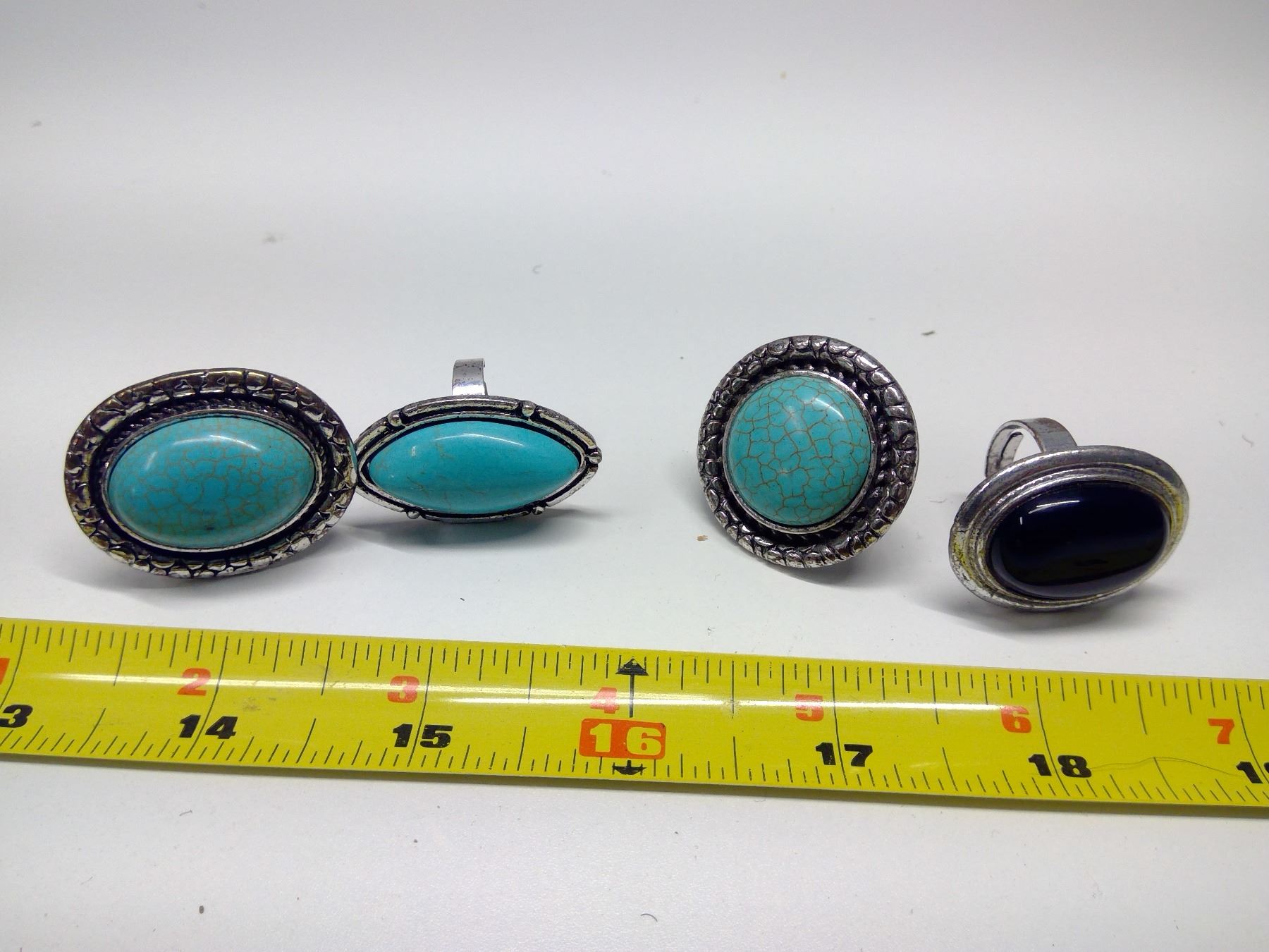 4 Large Stone Rings, Onxy + Howlite – adjustable bands