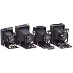1) "Goerz Tenax", 9 x 12 cm, 1926, Dogmar 4,5/13,5, Compur 1-1/200 Sek., Objektivplatte "Zeiss Ikon", (3+/3). - 2) "Ica Volta 106", 6 x 9 cm, ab 1910, Novar 6,8/10,5, Ica 1/25-1/100 Sek., (3/3). - Und: 3-4) 2 unbezeichnete deutsche Plattenkameras (4/-). 4 German folding-bed cameras (Goerz, Ica and 2 no-name). - € 250/400 - (62/142)