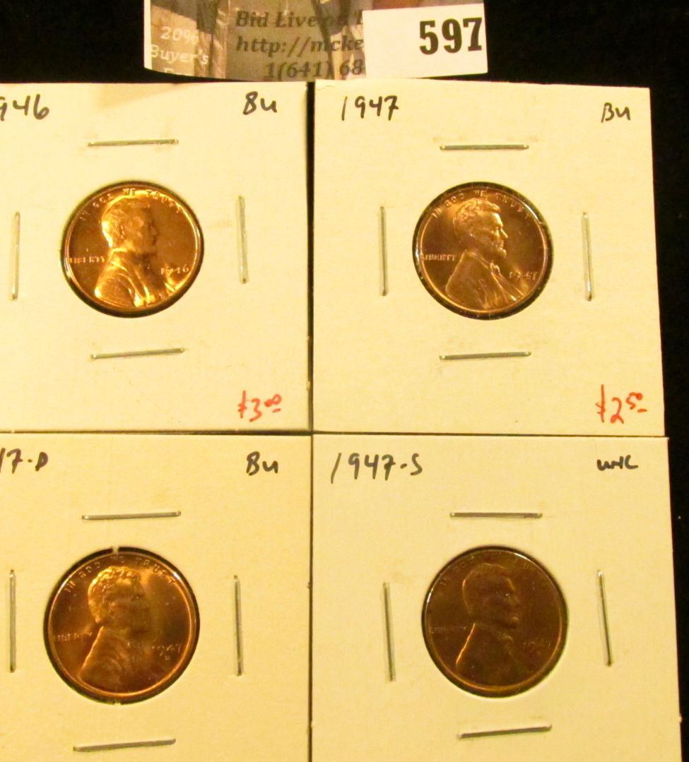 (4) Lincoln Cents, 1946, 1947, 1947-D, all BU, 1947-S Unc (but still nice), group value $9+