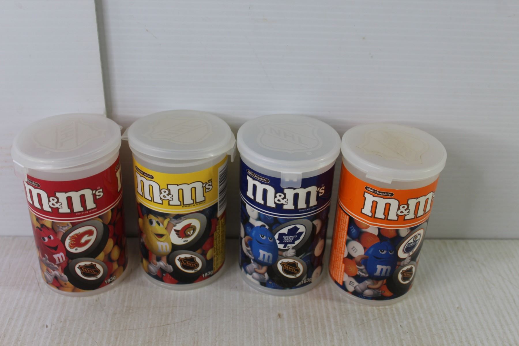 (4) M&M NHL Plastic Containers, (4) M&M Toys