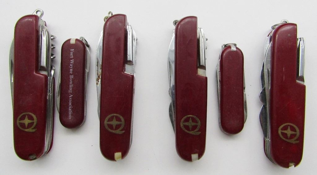 POCKET KNIVES/MULTI TOOLS. 3-12 BLADE/TOOL.  1-10 BLADE/TOOL. SOME ARE MISSING THE PICK  AND TWEEZERS. THEY ARE USED & BONUS 2 MINI  KNIVES.