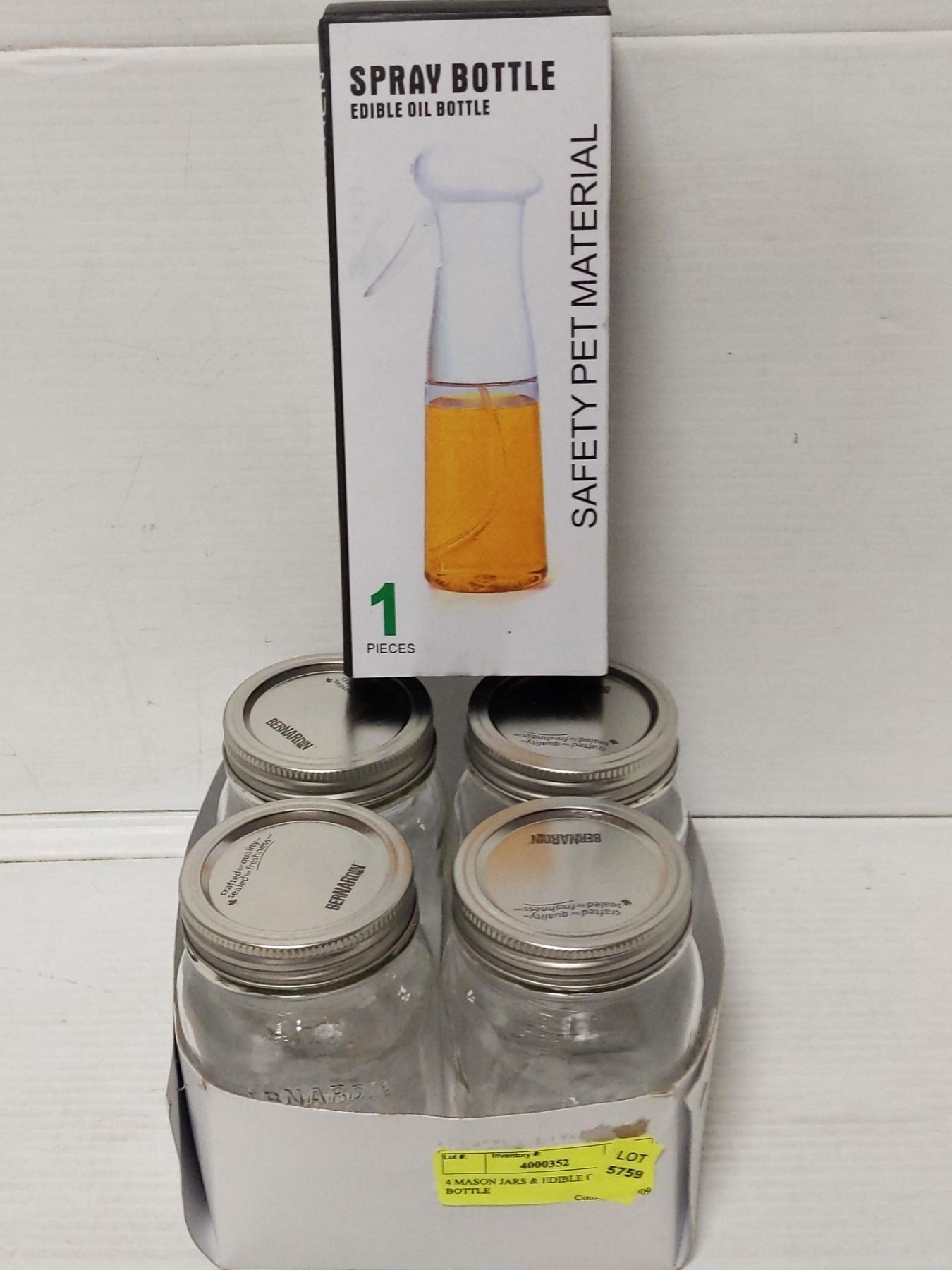 4 MASON JARS & EDIBLE OIL SPRAY BOTTLE