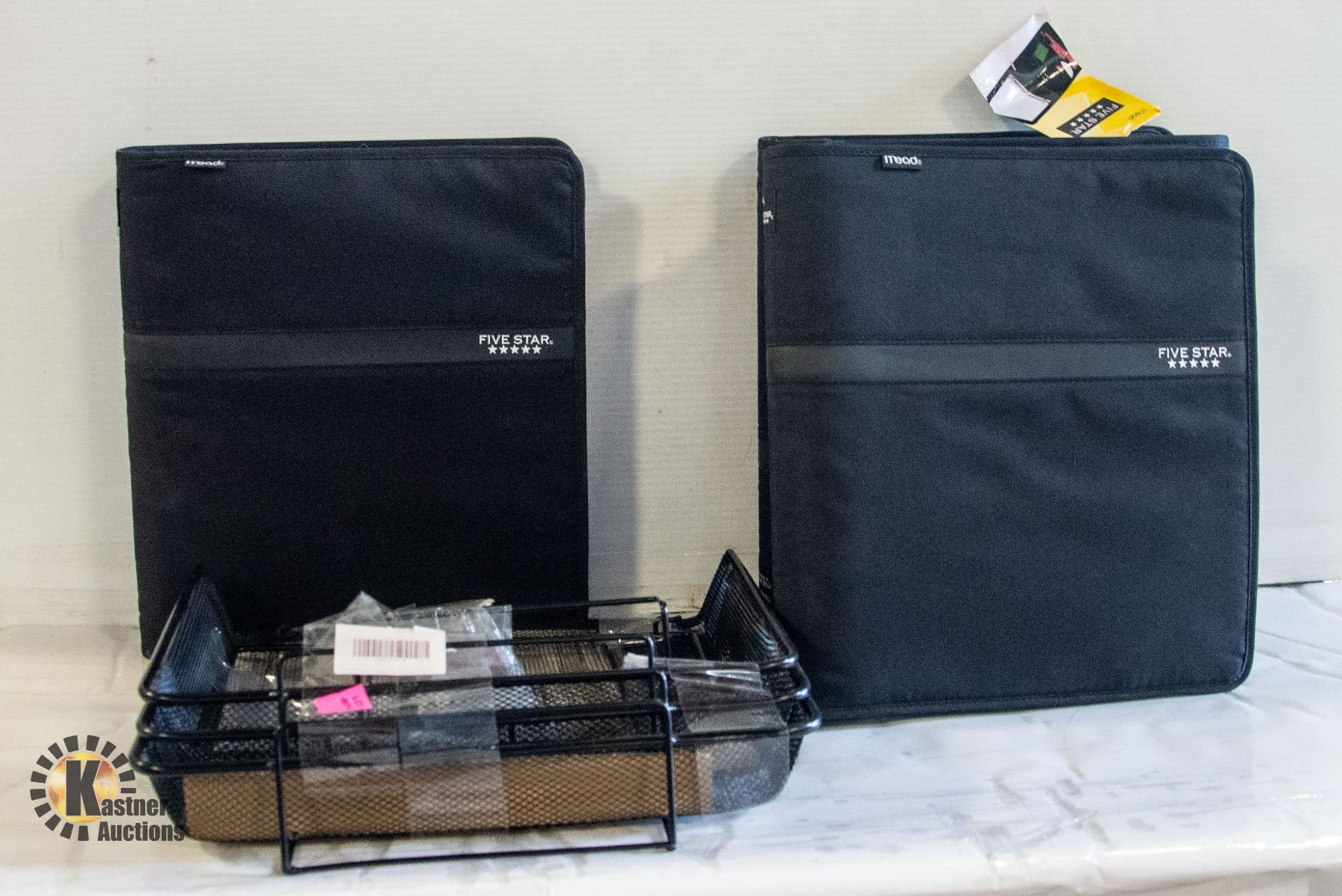4 MEAD ZIPPER BINDERS AND FILE BASKET