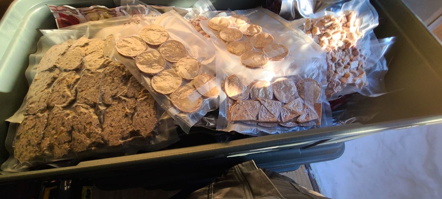 4 MEDIUM PLANO TOTES OF HOME MADE FREEZE DRIED FOOD USE AT YOU OWN RISK QUALITY UNKNOWN