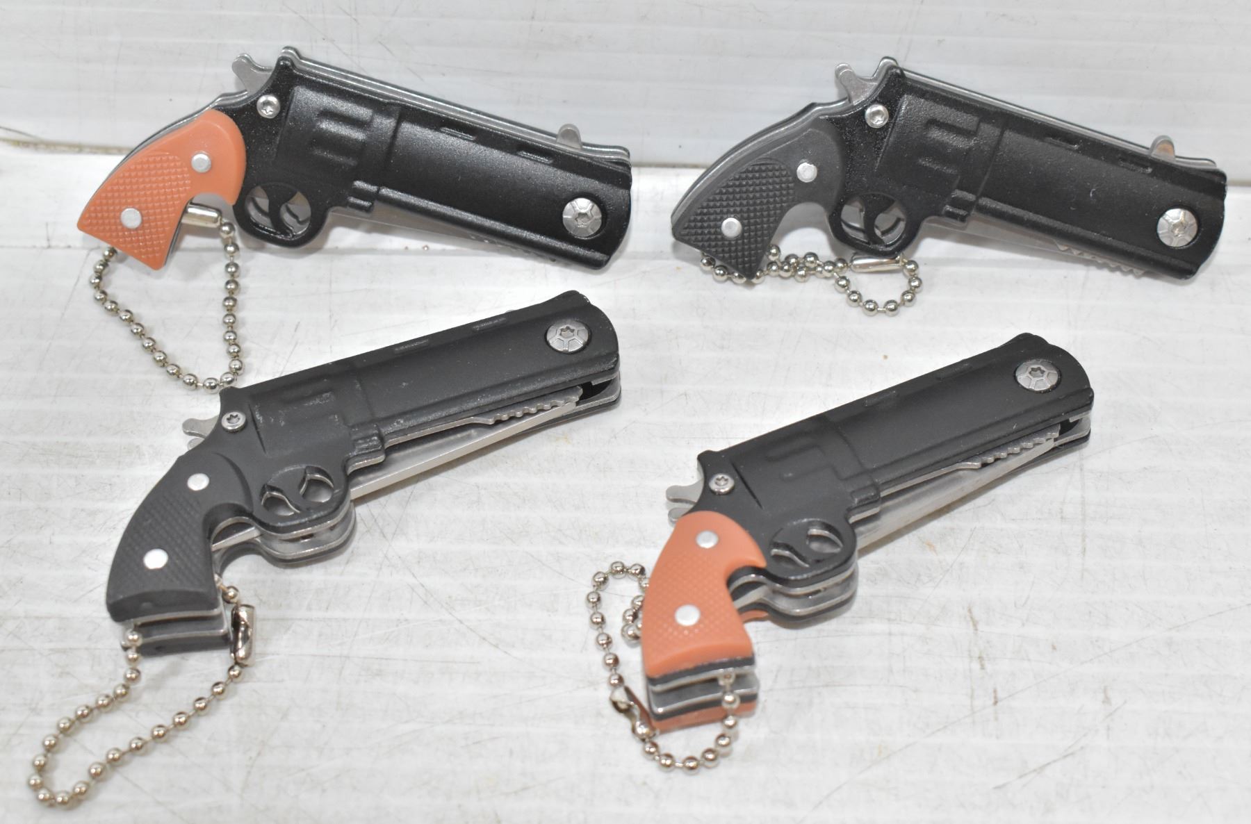 4 MINI REVOLVER FOLDING KNIVES - 2 BLACK, 2 BROWN