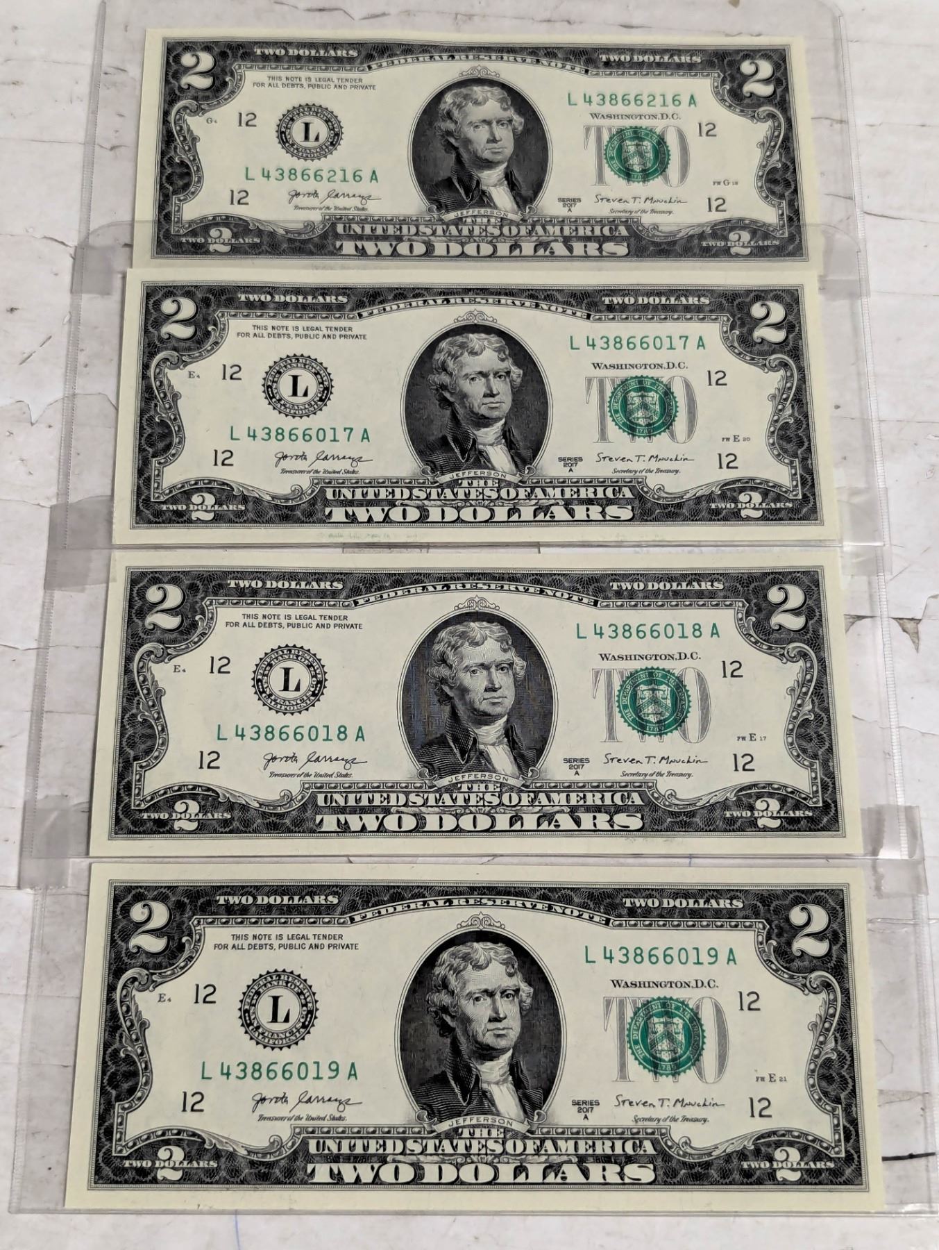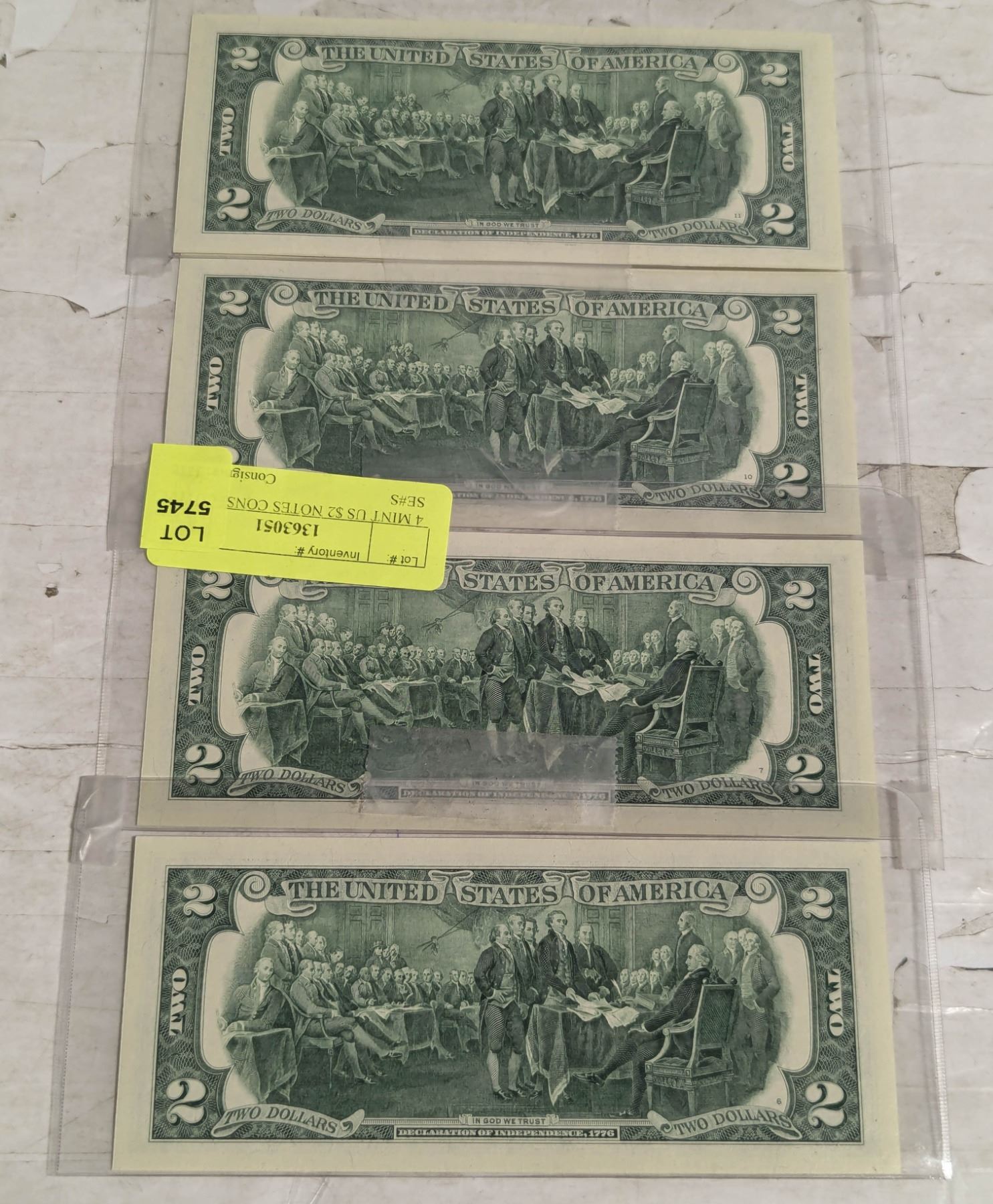 4 MINT US $2 NOTES CONSECUTIVE SE#S