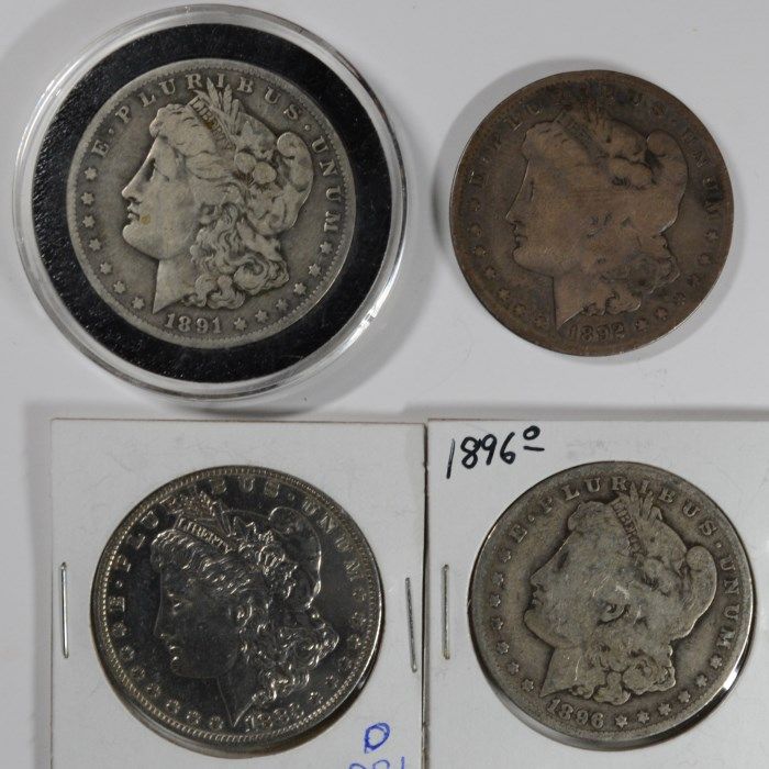 4-MORGAN DOLLARS 1883-O, 1891-O, 1892-S, 1896-O