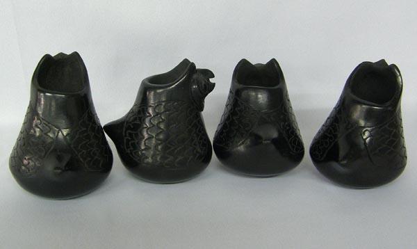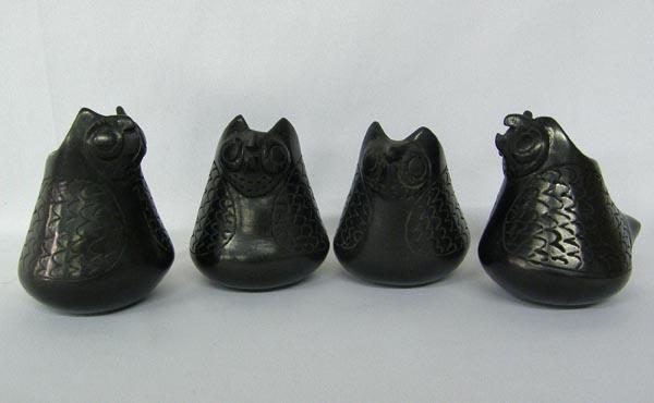 4 Mata Ortiz Black Pottery Owls Signed. The largest measures 3''x3.5''. Shy $25.