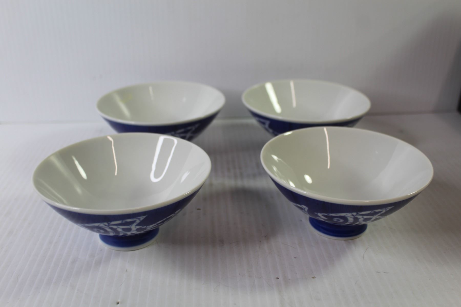 (4) Matching Rice Bowls, (4) Sets of Chopsticks, In Box