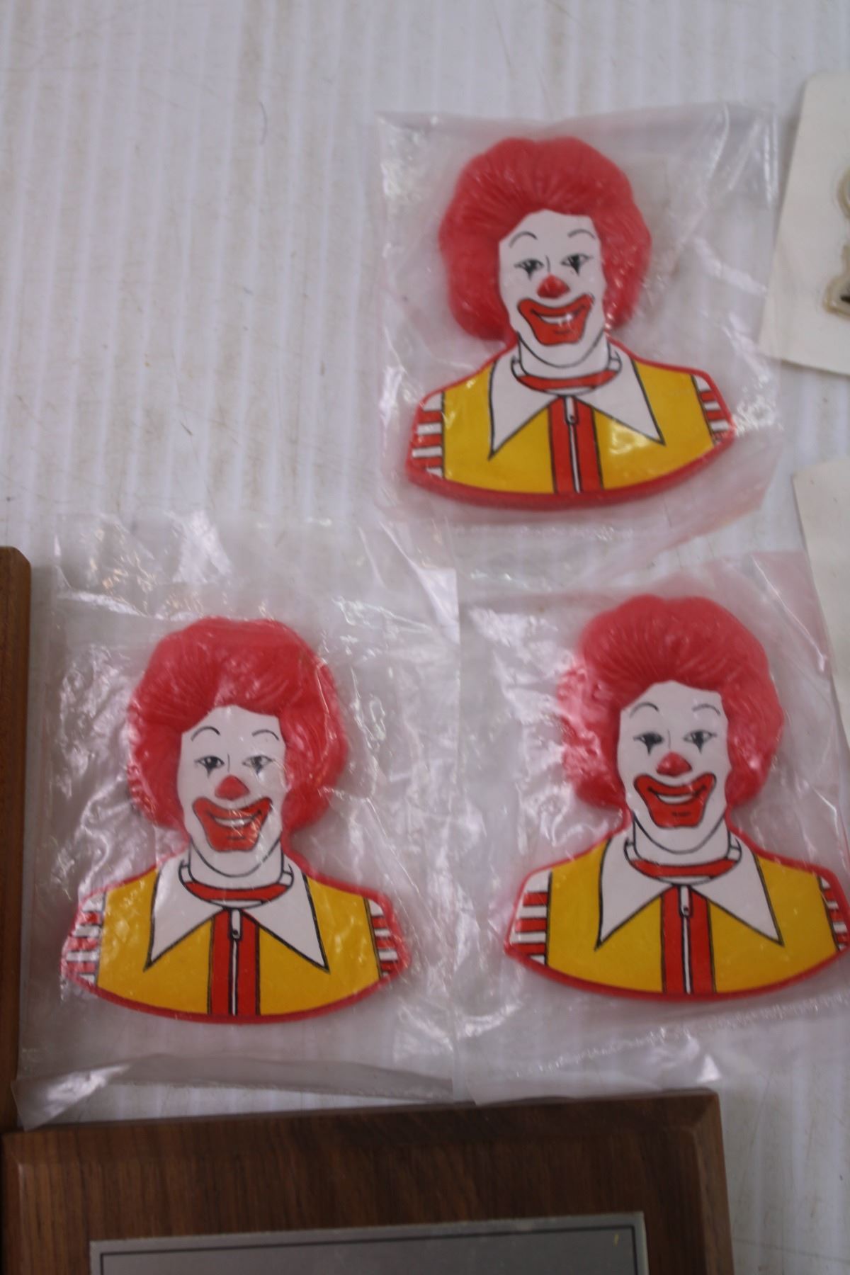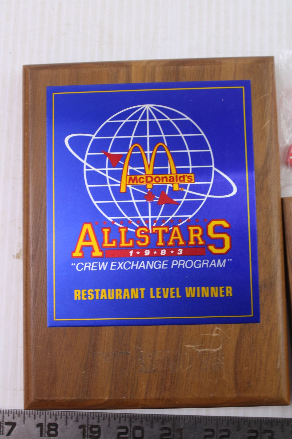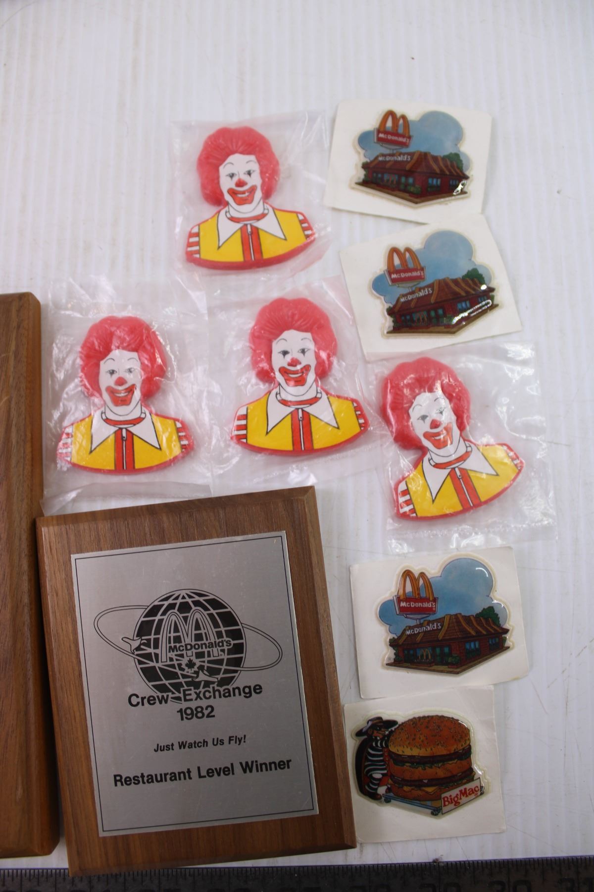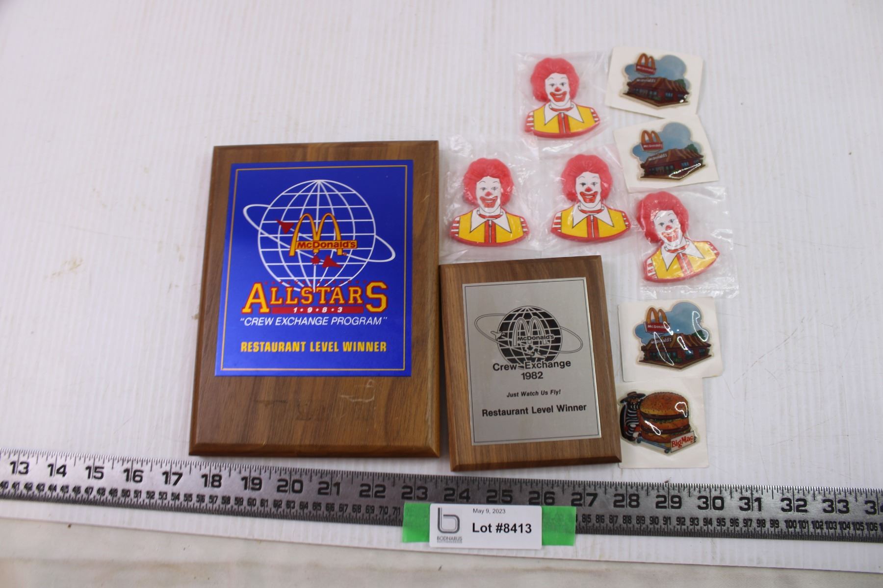 4 McDonalds magnets and 4 stickers and 2 plaques