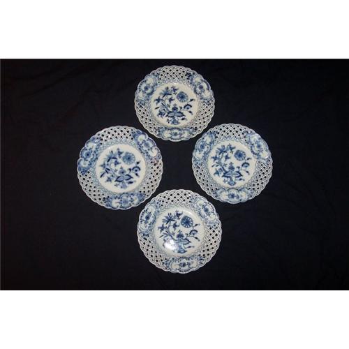 <tr><td>Title:4 Meissen Blue Onion Reticulated Plates</td></tr>