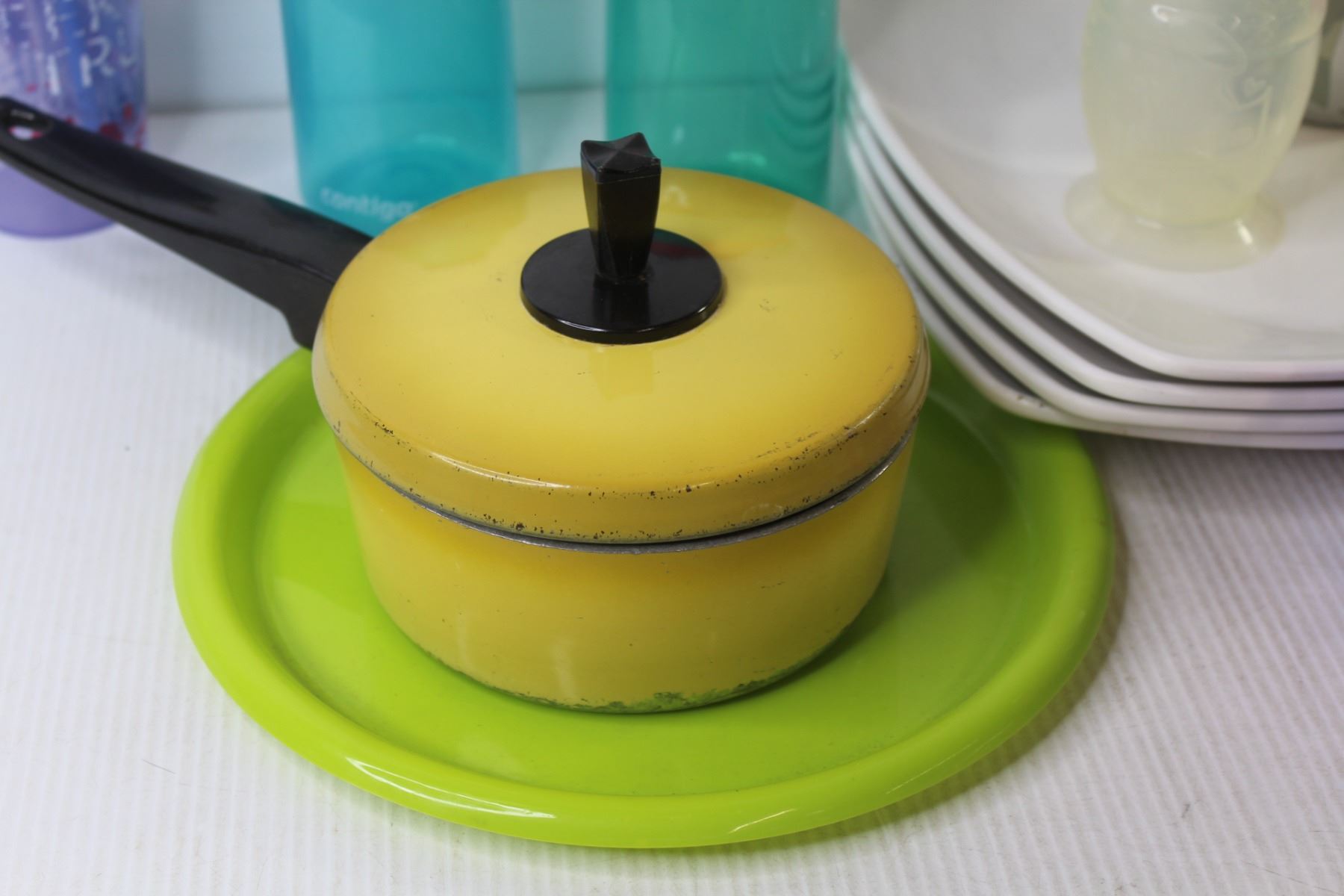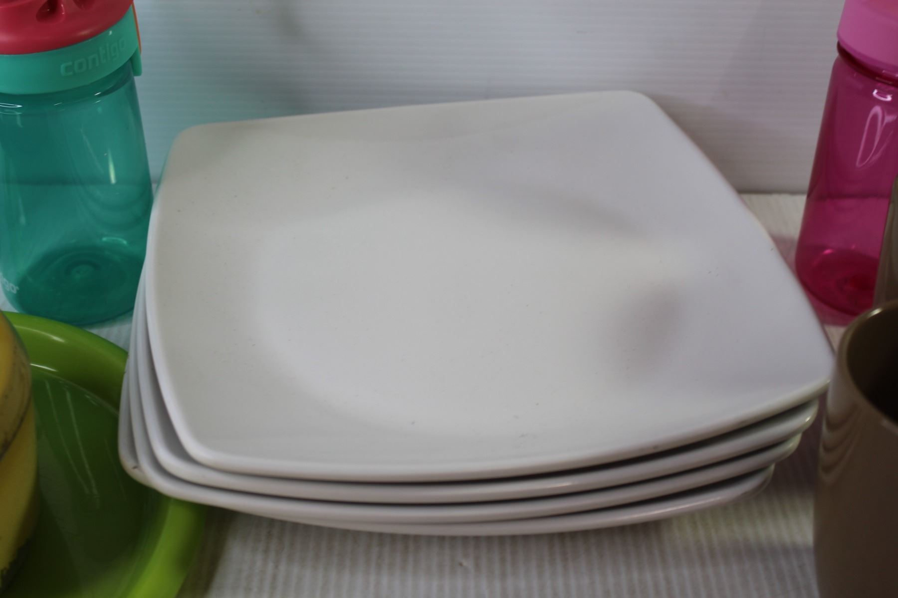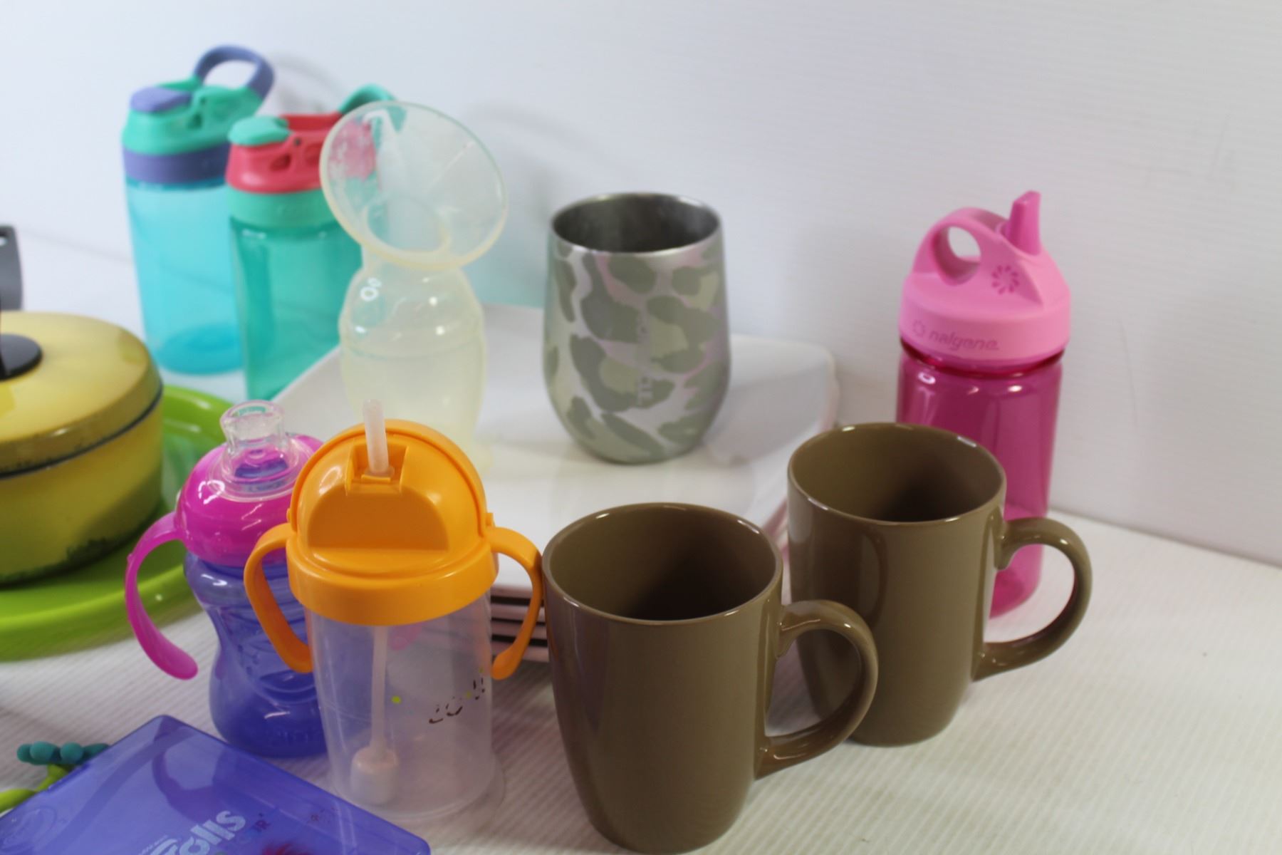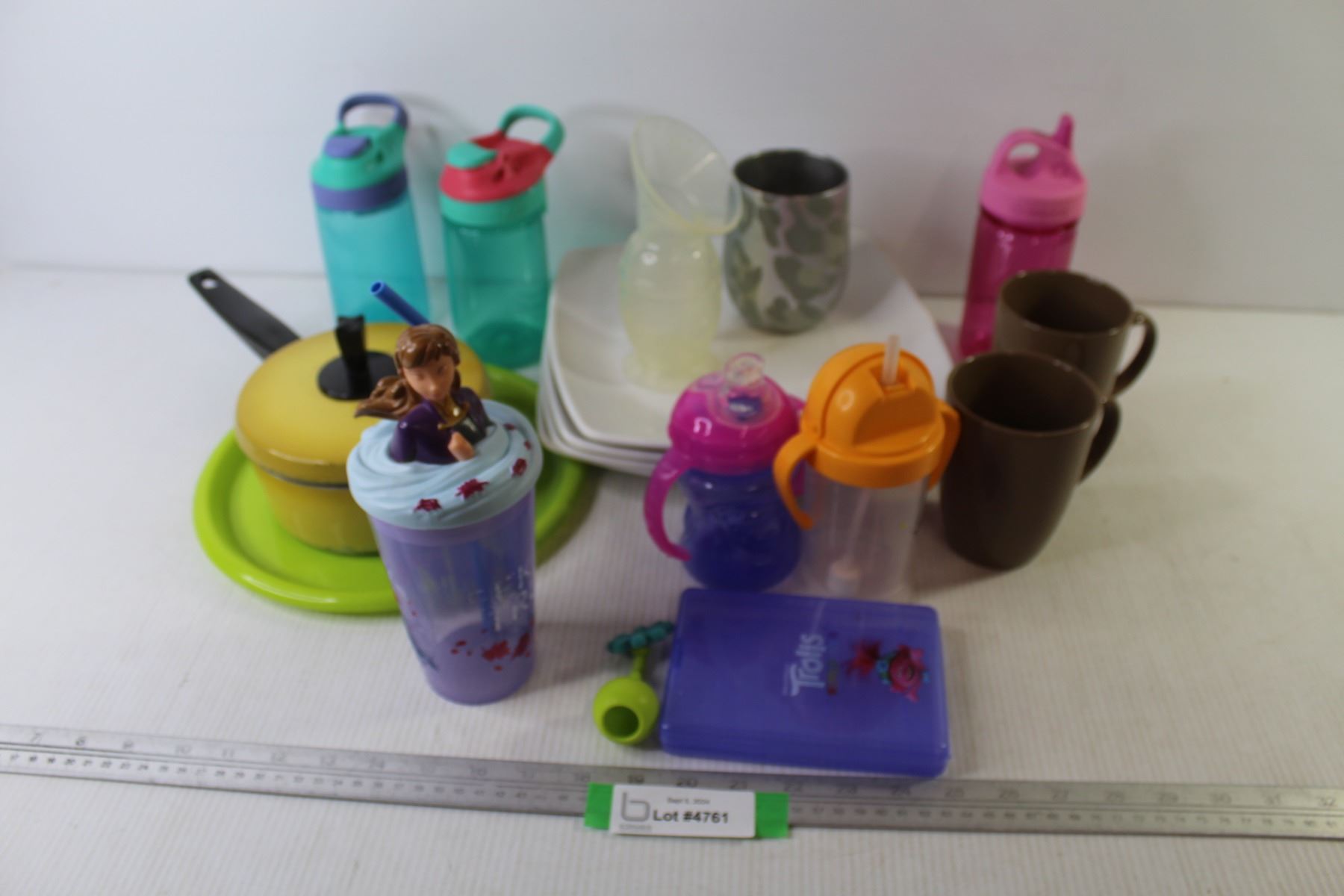 (4) Mela-Ware Plates - Small Sauce Pan - Assortment of Cups & Mugs - Breast Pump