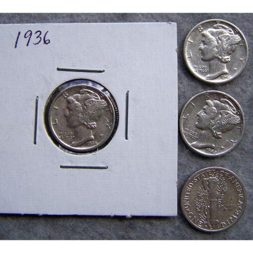 4 Mercury Silver Dimes With Different Dates