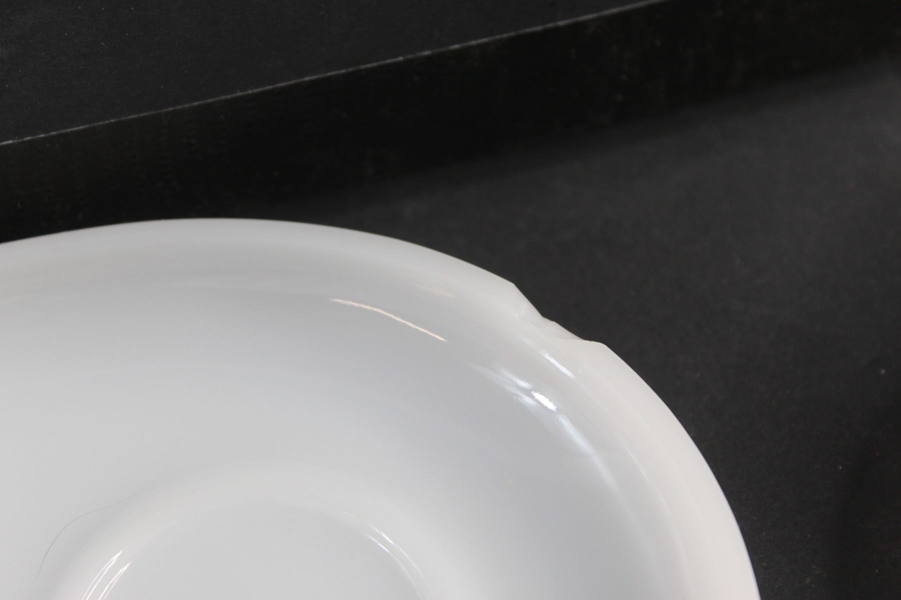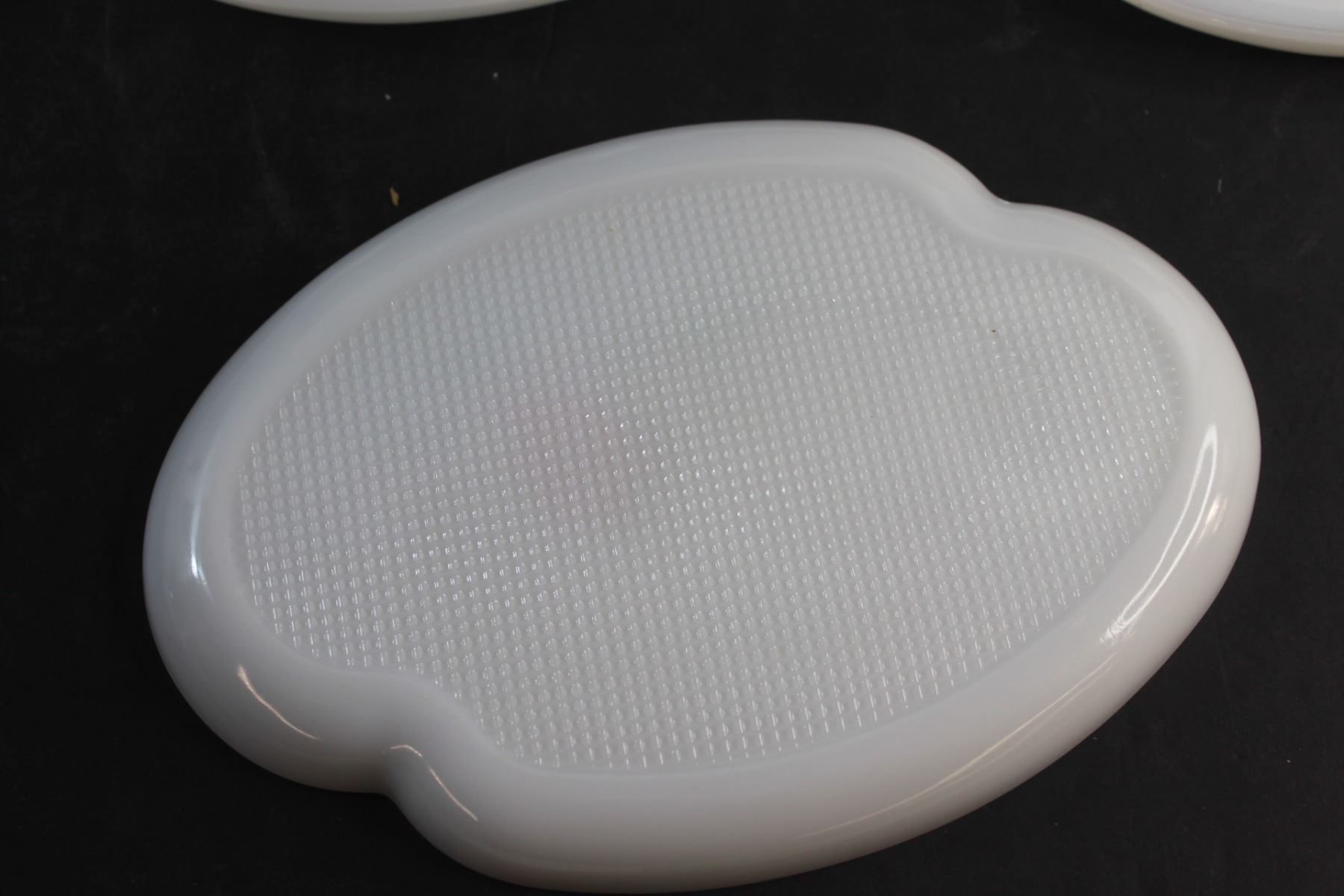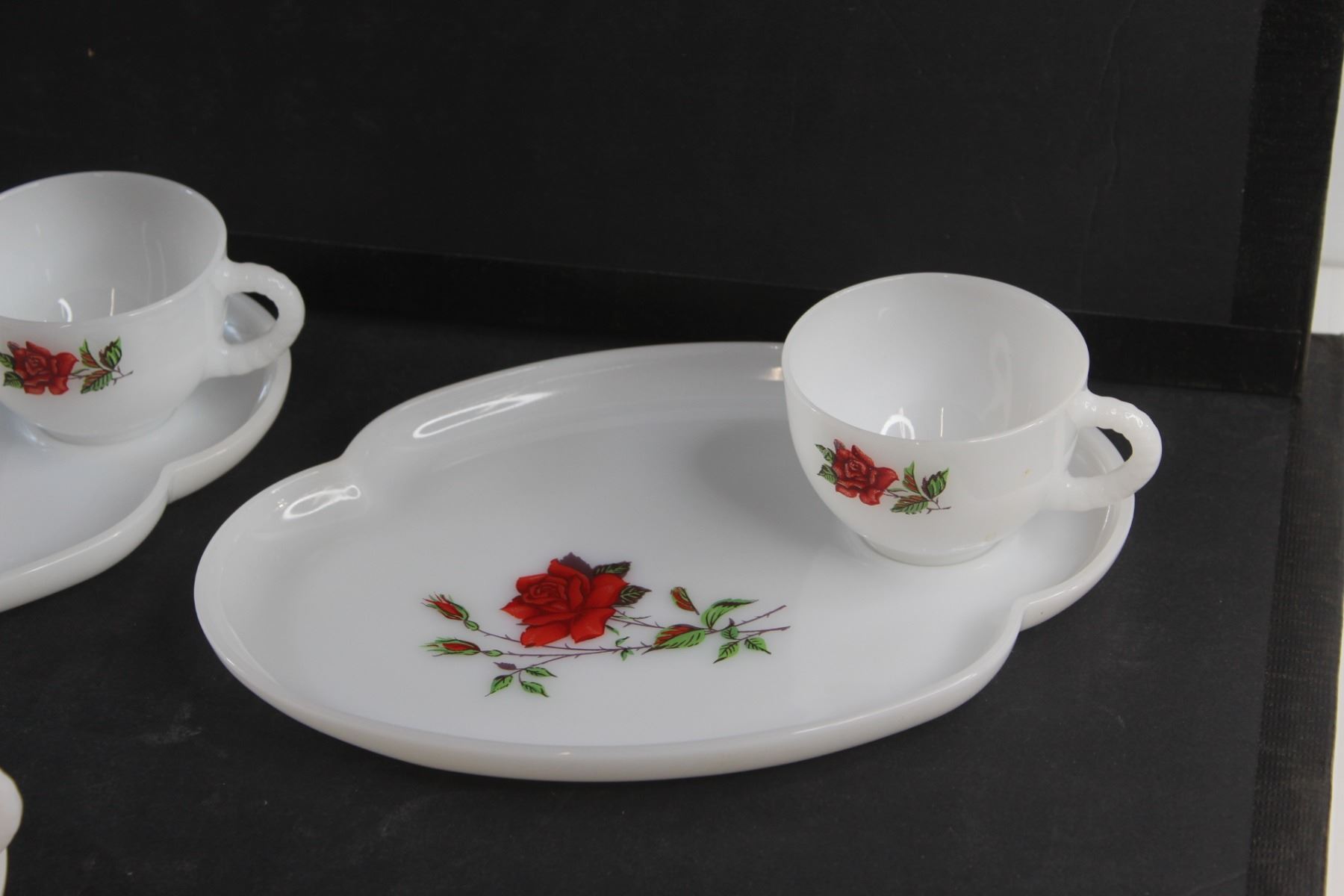 (4) Milk Glass Serving Trays with Tea Cups - Chipped