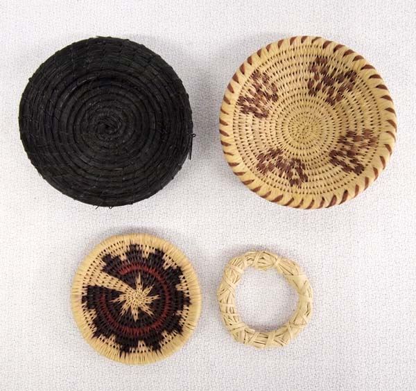 4 Miniature Native American Navajo Baskets, largest measures .5''H x 2''D