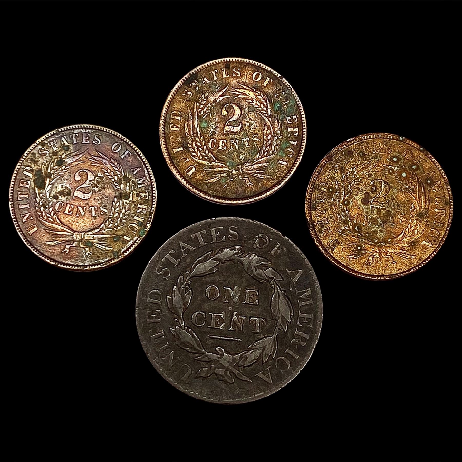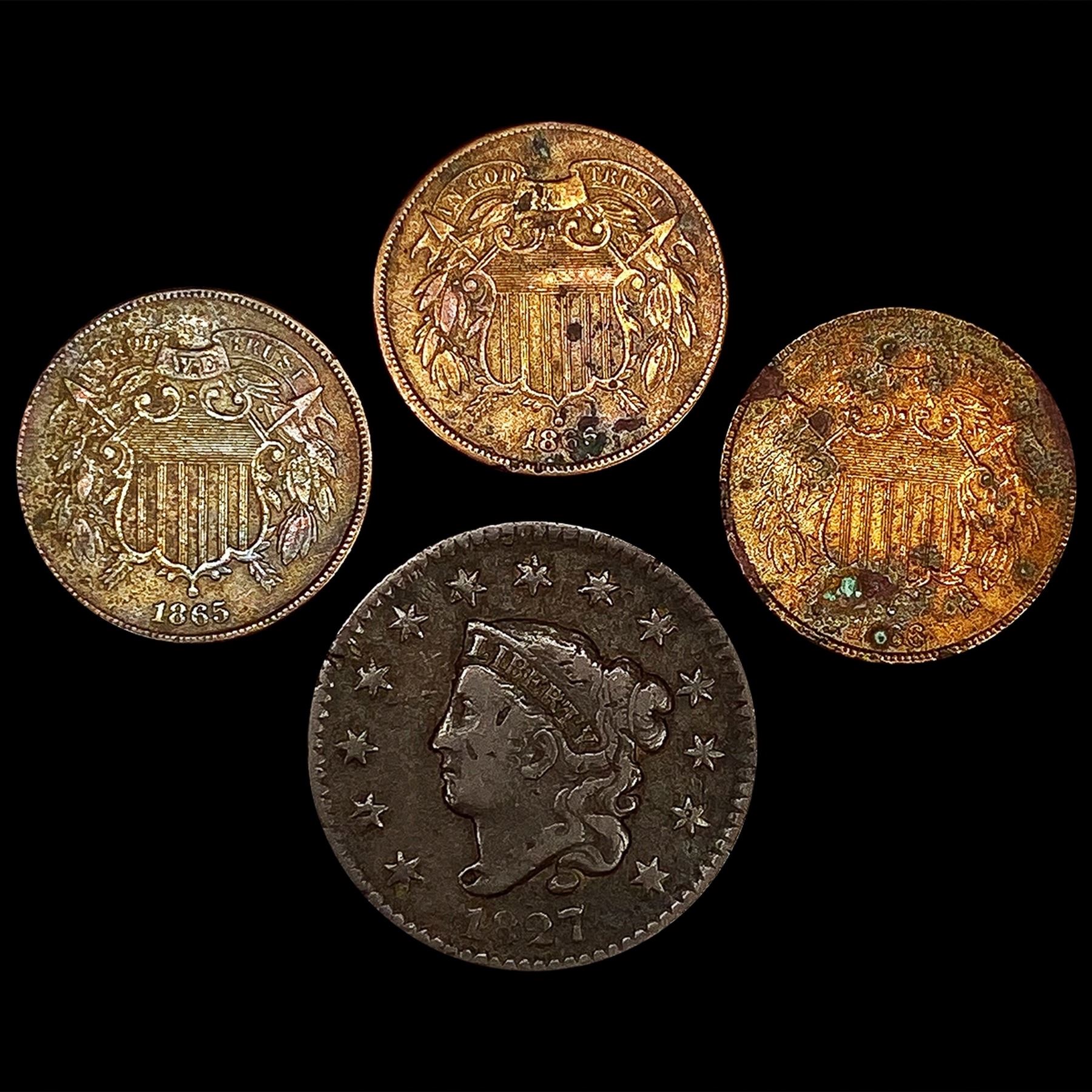 (4) Misc Cents (1827, (2) 1865, 1866) NICELY CIRC